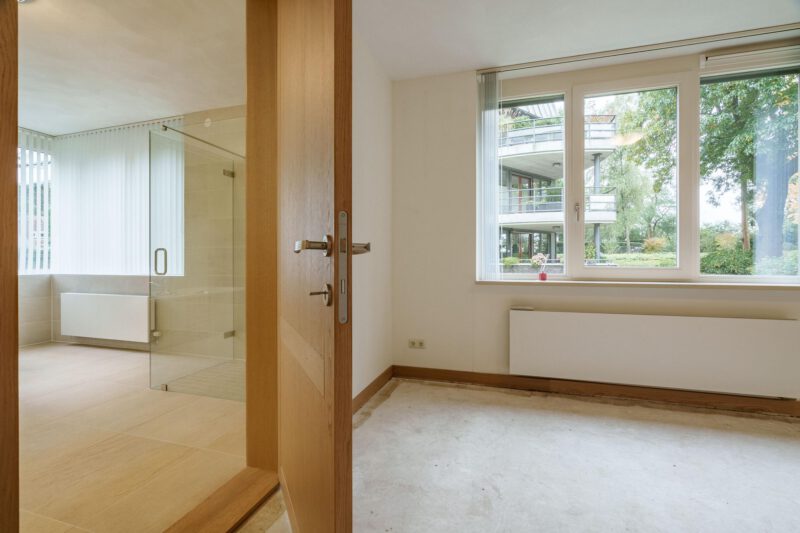Indeling: Entree, zeer ruime hal met garderobenis, meterkast, toiletruimte met zwevend toilet voorzien van fonteintje en bergkast met opstelplaats voor de CV ketel en bergruimte. De prettige lichte en zeer royale woonkamer is af te sluiten middels dubbele glazen taatsdeuren. Tevens heeft de living raampartijen aan drie zijden die zorgen voor een heerlijke lichtinval en een mooi zicht op het park. Een grote schuifpui geeft toegang tot het ruime terras op het zuiden. Aansluitend bevindt zich de eetkamer in open verbinding met de woonkamer. De keuken, af te sluiten middels een glazen taatsdeur, is uitgevoerd in een hoekopstelling in lichte kleurstelling. De keuken heeft een raam en beschikt over praktische laden, onder- en bovenkastjes en diverse inbouwapparatuur, te weten; een elektrische kookplaat, afzuigkap, een oven, magnetron en een topline bediende vaatwasser; tevens bevindt zich een vrijstaande RVS koelkast alsmede een ontbijt-/bartafel met twee krukken in de keuken. Vanuit de hal heeft men toegang tot de wasruimte welke is voorzien van een stortbak, de vloerverwarmingsinstallatie en aansluitingen voor de wasapparatuur. Deze ruimte is bovendien voorzien van een veiligheidsdeur met 10-punts slot die afsluitbaar is van zowel de binnen- als buitenzijde als (inloop)kluis/saferoom. De hoofdslaapkamer heeft een grote inloopkast en badkamer ensuite. De royale badkamer is uitgevoerd in lichte kleurstelling, betegeld tot het plafond en voorzien van een ligbad, inloopdouche met regendouche, twee separate wastafelmeubels met handige lades en spiegelkasten en een tweede zwevend toilet. Voorts een tweede ruime slaapkamer en een tweede badkamer met een donkere vloertegel en witte wandtegel, betegeld tot het plafond en voorzien van een stoomdouchecabine, vast wastafelmeubel met lades en spiegelkast en een derde zwevend toilet. De derde slaapkamer is uitgerust met een vaste schuifkastenwand.