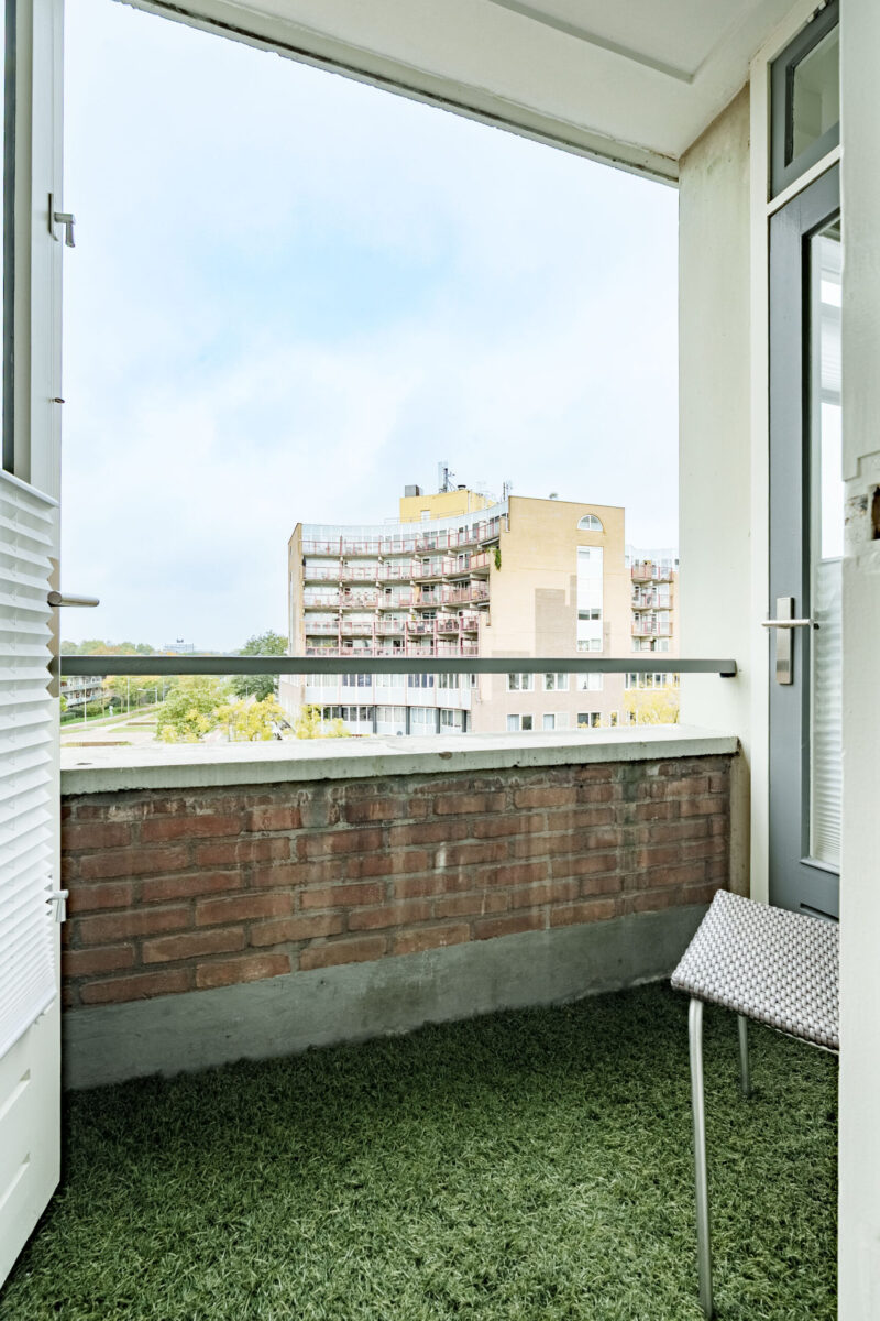 Het balkon is gelegen op het noorden, wat zorgt voor een koele en schaduwrijke buitenruimte. Het balkon is zowel vanuit de woonkamer als vanuit twee van de slaapkamers toegankelijk, waardoor er meerdere mogelijkheden zijn om naar buiten te stappen.