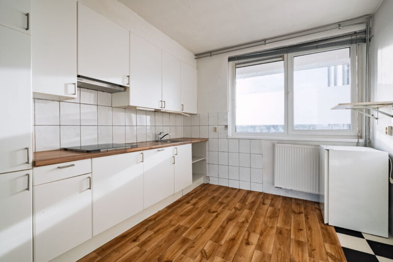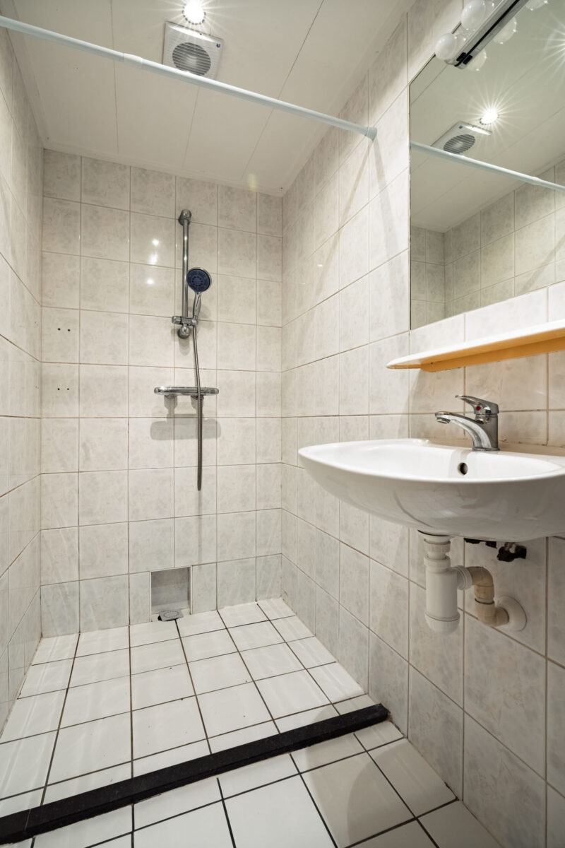 De eetkeuken grenst aan de woonkamer en biedt een prettige ruimte om te koken en te dineren. De keuken is voorzien van diverse apparatuur, waaronder een kookplaat, afzuigkap, koelkast en vriezer. De betegelde badkamer beschikt over een douche, wastafel en aansluitingen voor wasapparatuur.
