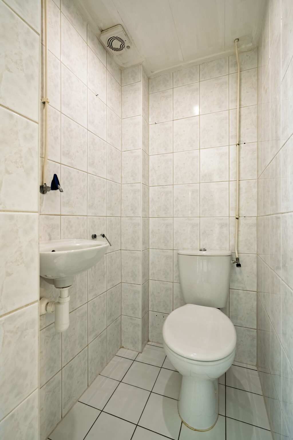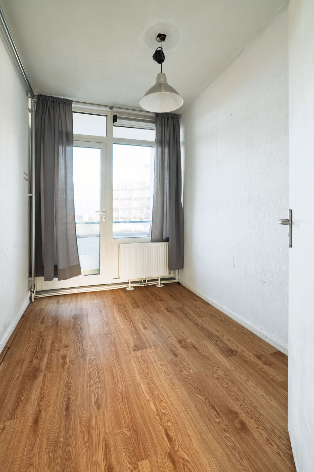 Via de entree komt u in de hal, waar zich het toilet met fonteintje bevindt. Vanuit de hal heeft u toegang tot de lichte woonkamer, die dankzij de grote raampartijen prettig veel daglicht ontvangt. Vanuit de woonkamer is er toegang tot het balkon.