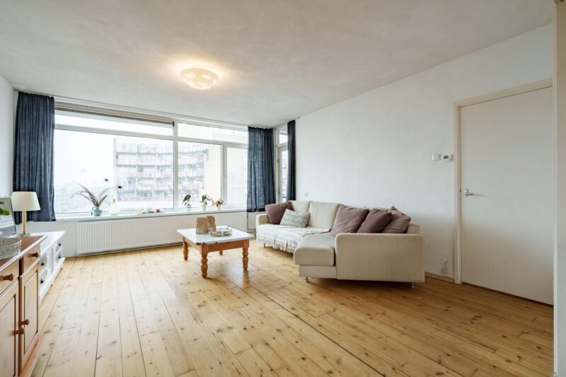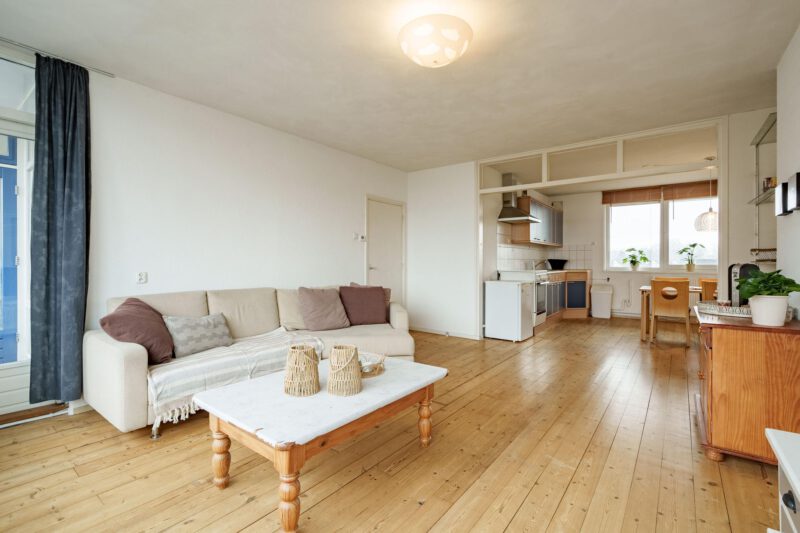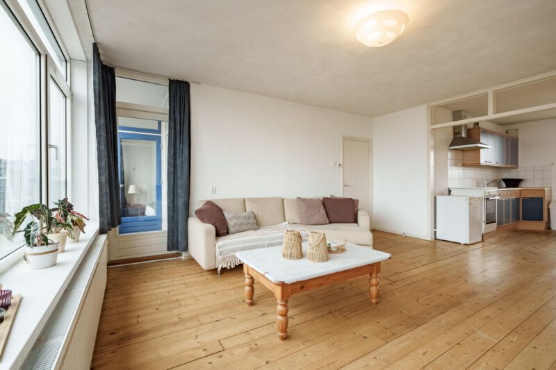 Indeling: Entree, hal, toilet met fontein, lichte woonkamer met grote raampartijen en met toegang tot het balkon, open eetkeuken, badkamer voorzien van een douche, wastafel en wasmachineaansluiting en drie slaapkamers, waarvan twee slaapkamers met toegang tot het balkon.