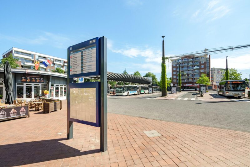 Vanuit het appartementencomplex loop je zo het busstation op, dat als centrale opstapplek dient voor openbaar vervoer in alle richtingen.
