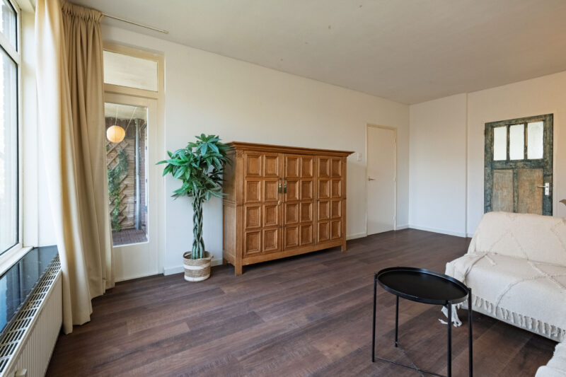 De kamer grenzend aan de woonkamer kan eenvoudig bij de woonkamer worden betrokken. Hierdoor kan een prachtige, ruime doorzonwoonkamer worden gecreëerd met een aangename lichtinval en een open, lichte sfeer.