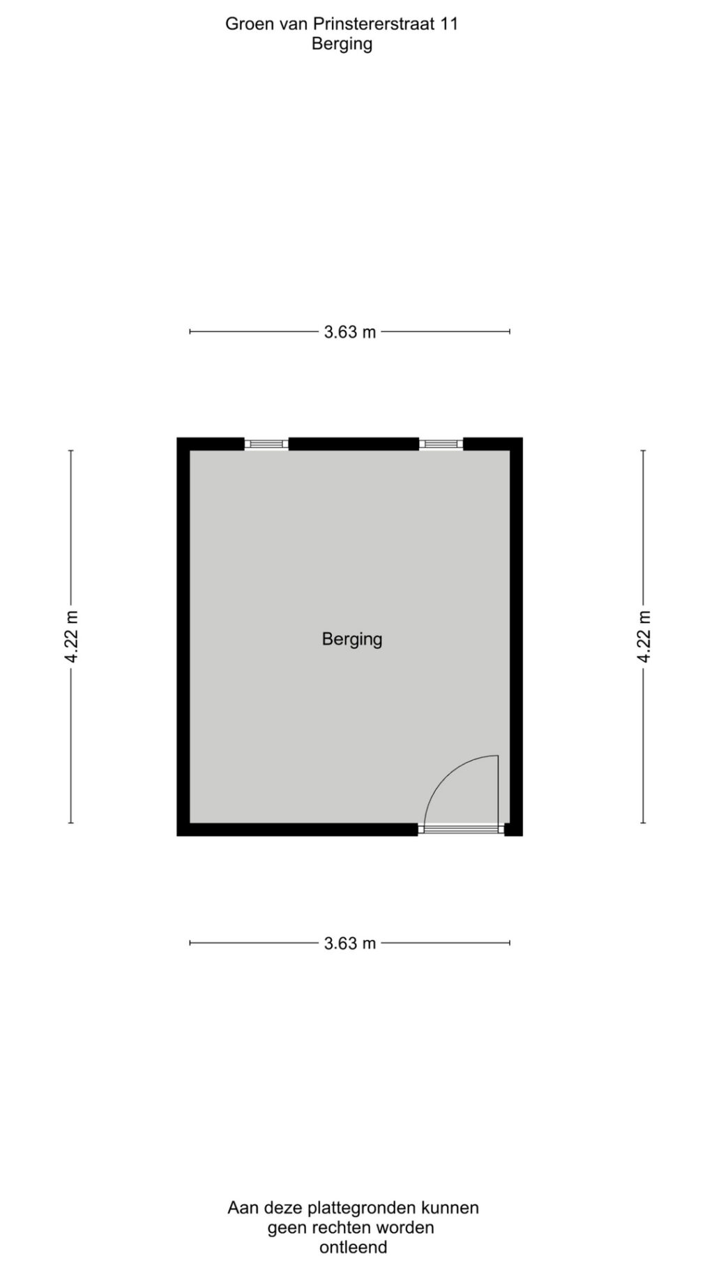 De oppervlakte van de woning is opgemeten aan de hand van de (BBMI) Meetinstructie. Deze meetinstructie is een afgeleide van de NEN2580. De meetinstructie is bedoeld om een meer eenduidige manier van meten toe te passen voor het geven van een indicatie van de gebruikersoppervlakte. De meetinstructie sluit verschillen in meetuitkomsten niet volledig uit, door bijvoorbeeld interpretatieverschillen, afrondingen of beperkingen bij het uitvoeren van de meting. De oppervlakte is een indicatie en de juistheid ervan wordt niet gegarandeerd. Koper is in de gelegenheid gesteld de woning en het perceel na te meten.