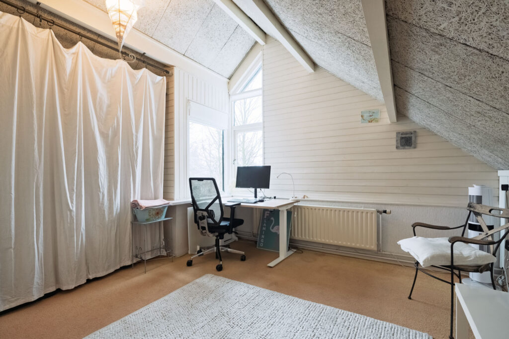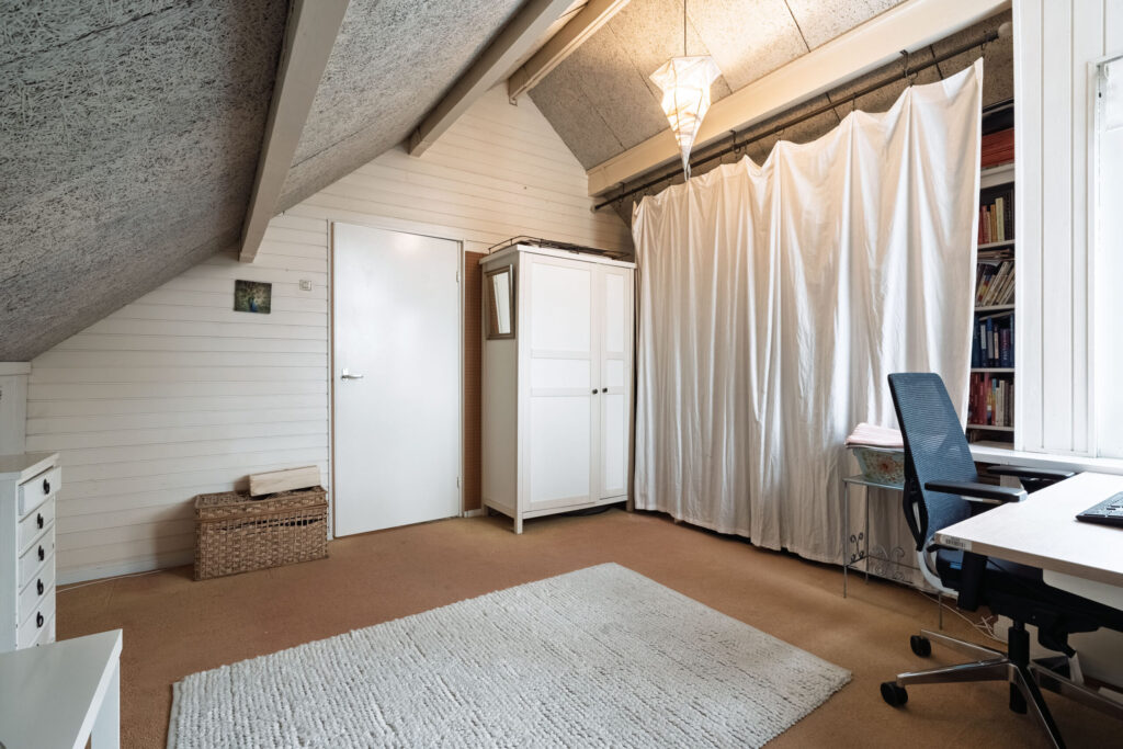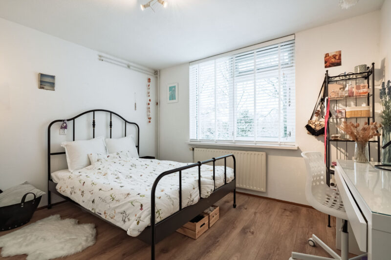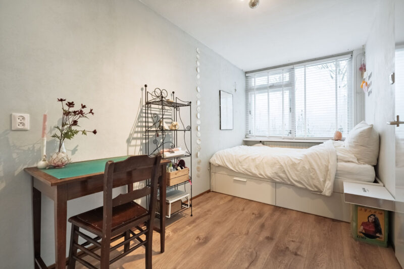 Op de tweede verdieping bevindt zich een vierde slaapkamer, die dankzij de ligging en indeling uitstekend te gebruiken is als slaap-, werk- of hobbykamer. Aangrenzend is een praktische berging aanwezig voor extra opbergruimte. Daarnaast is er een aparte wasruimte met directe toegang tot het ruime dakterras. Tevens bevindt zich op deze verdieping een aparte ruimte voor de cv-installatie.