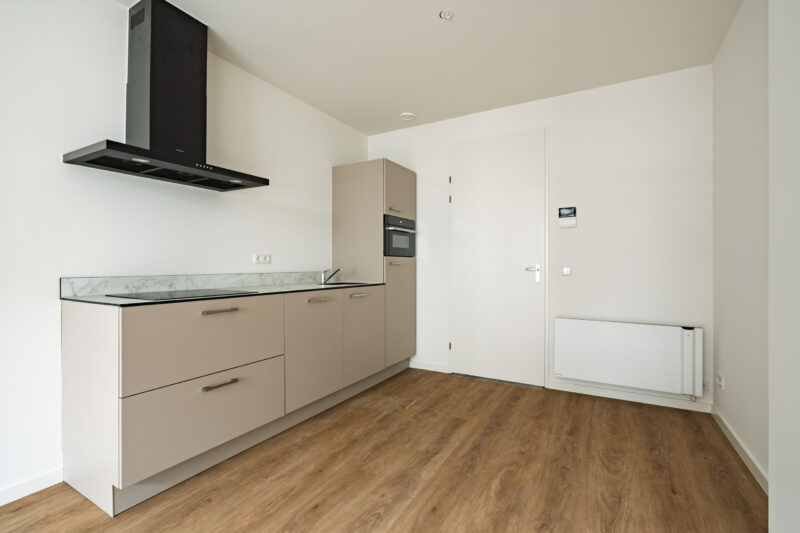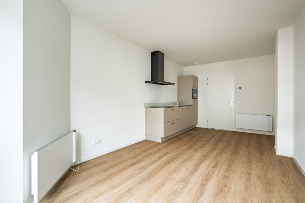 De vloeren in het appartement zijn afgewerkt met een prachtige eikenlook PVC vloer die zorgt voor een warme en moderne uitstraling en tegelijkertijd duurzaam en onderhoudsvriendelijk is.