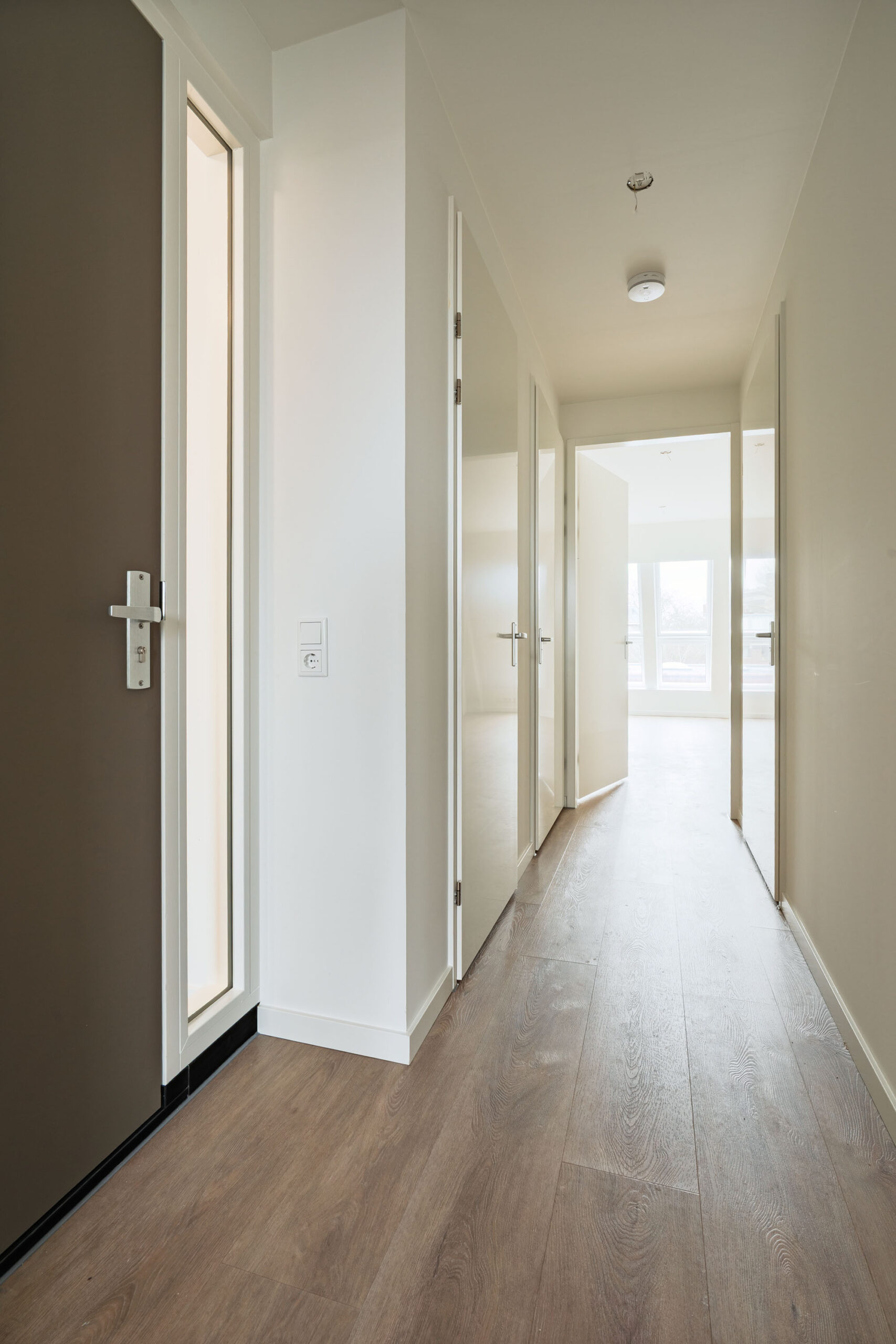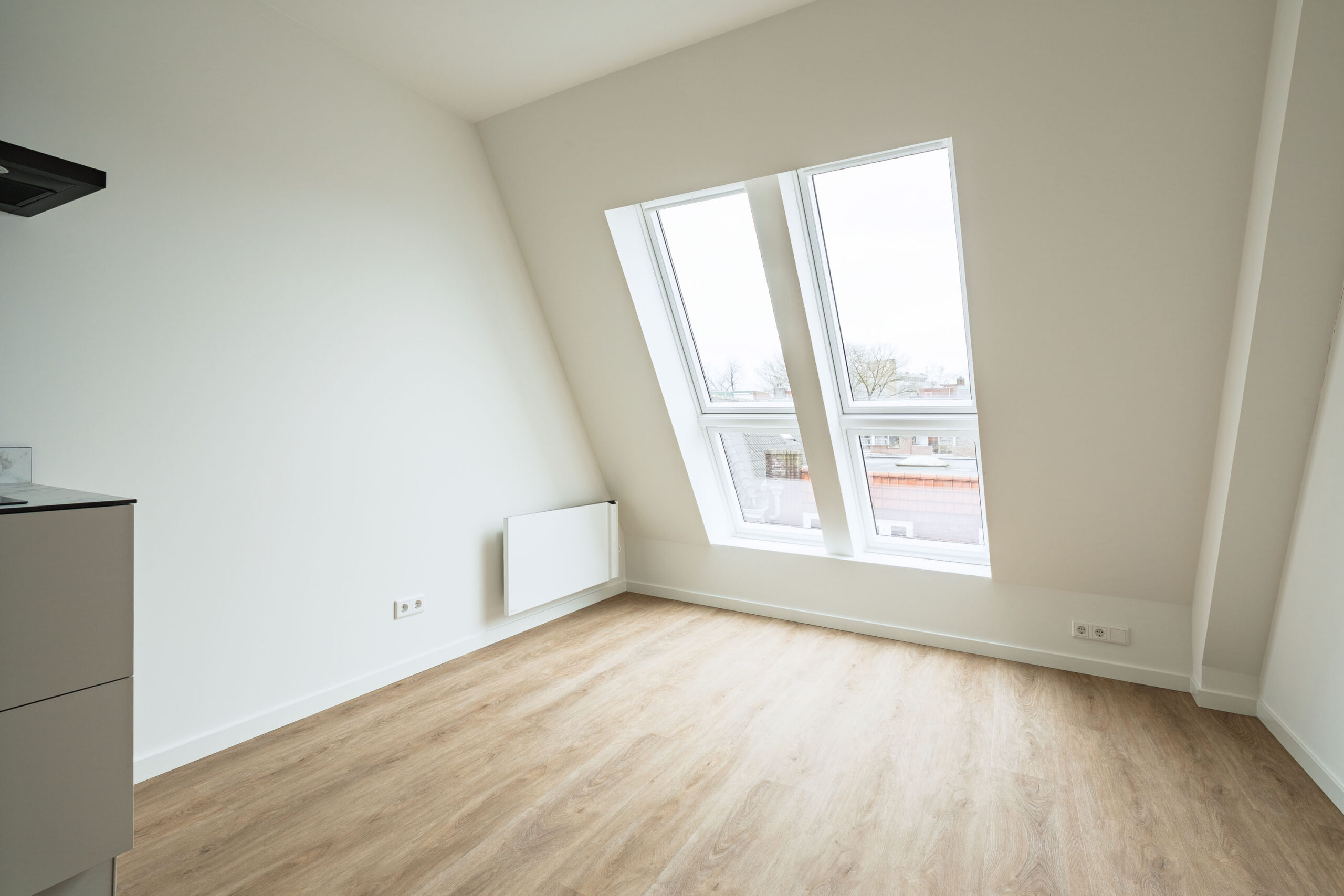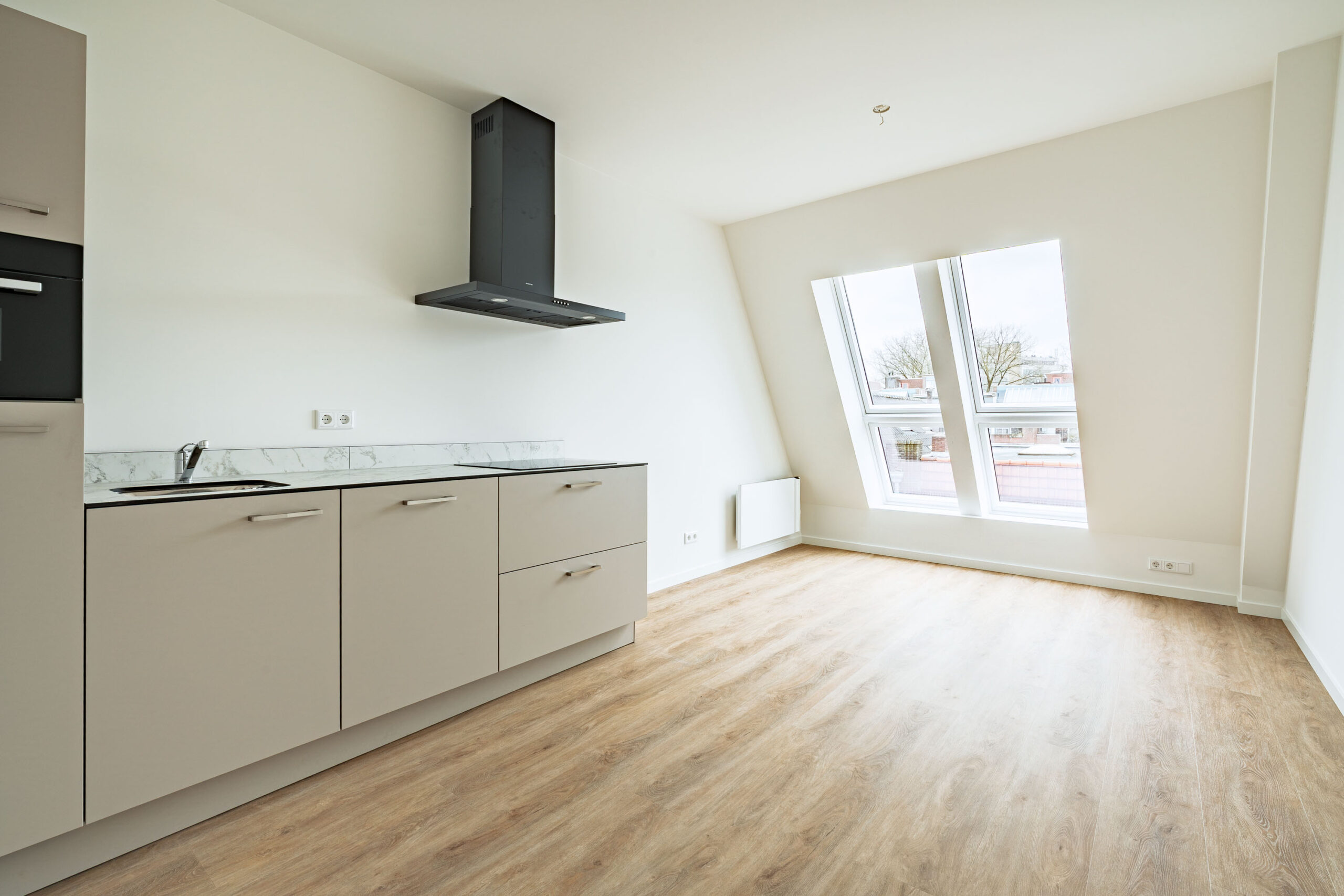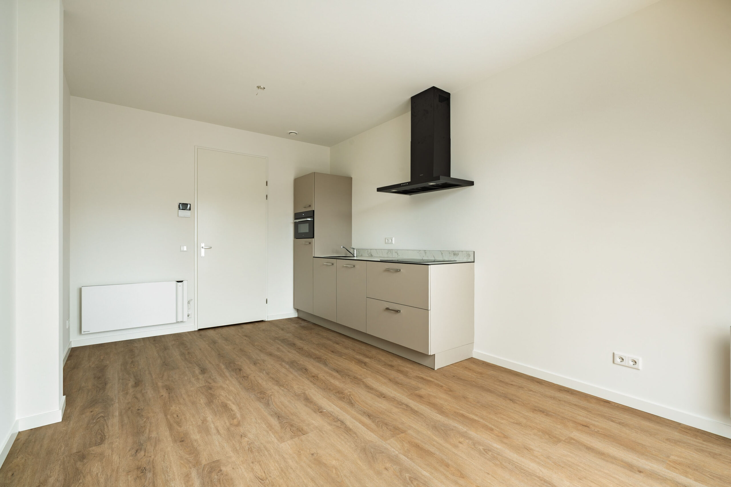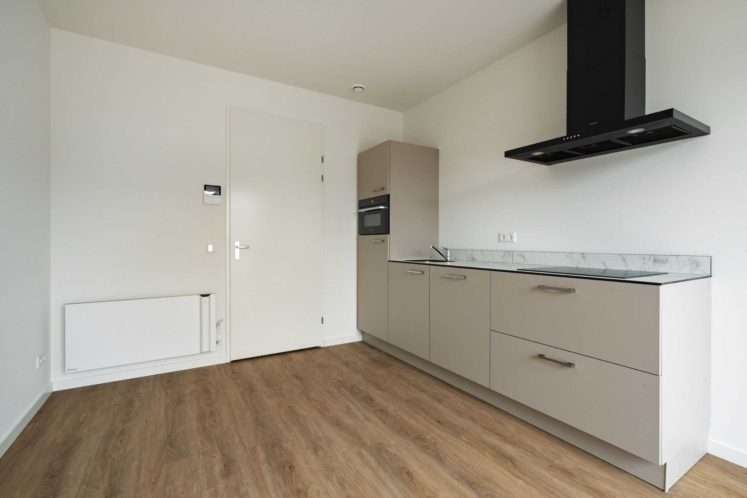 De vloeren in het appartement zijn afgewerkt met een prachtige eikenlook PVC vloer die zorgt voor een warme en moderne uitstraling en tegelijkertijd duurzaam en onderhoudsvriendelijk is.