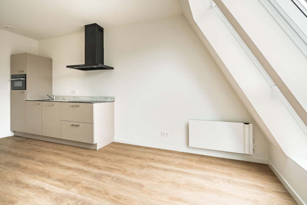 De vloeren in het appartement zijn afgewerkt met een prachtige eikenlook PVC vloer die zorgt voor een warme en moderne uitstraling en tegelijkertijd duurzaam en onderhoudsvriendelijk is.