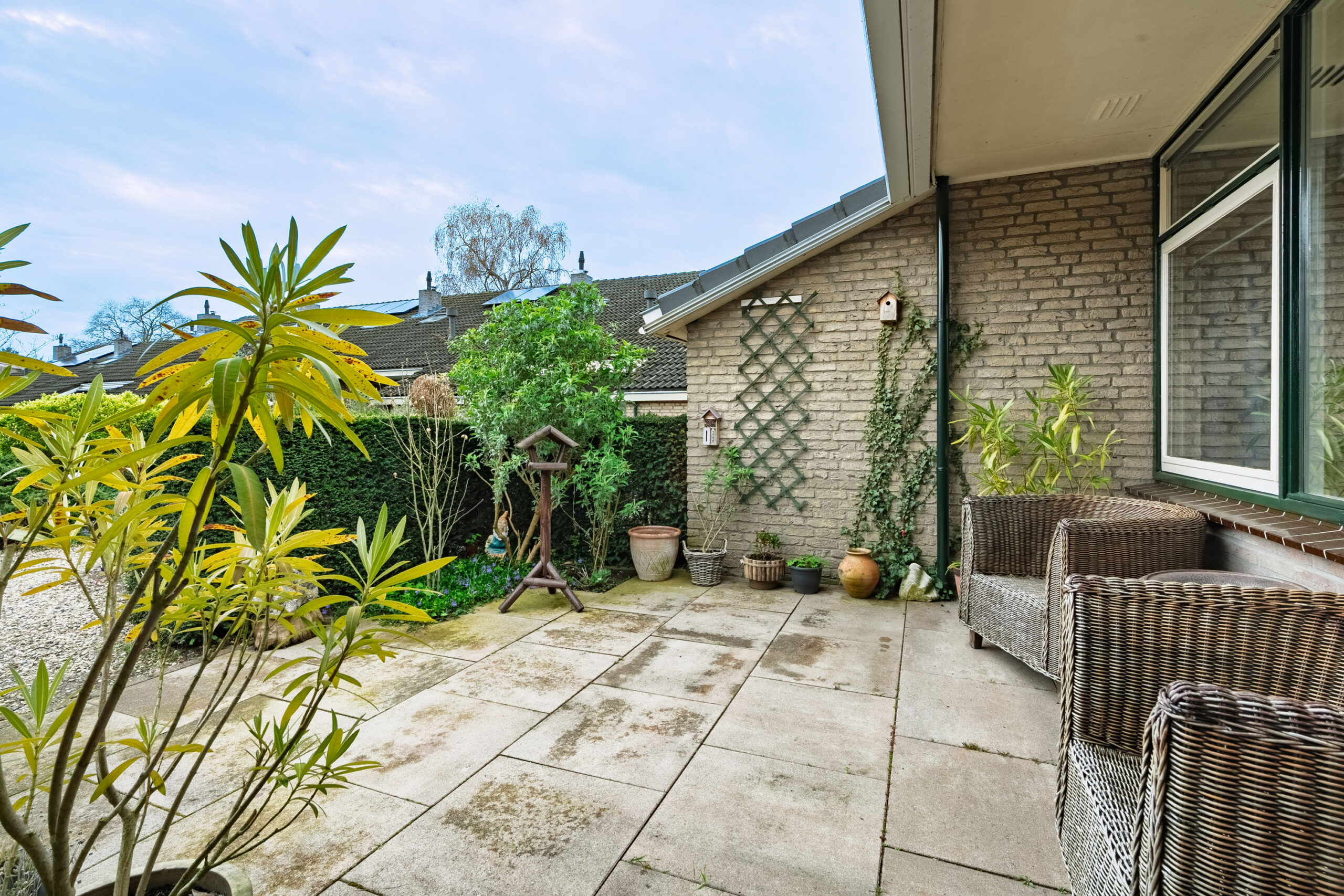 Deze woning heeft een unieke ligging: een heerlijk vrij gelegen zonneterras op het zuiden waardoor u optimaal kunt genieten van de rust. Bovendien is het terras voorzien van een mooie groen en strak gesnoeide taxus haag waardoor er privacy aanwezig is.