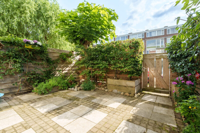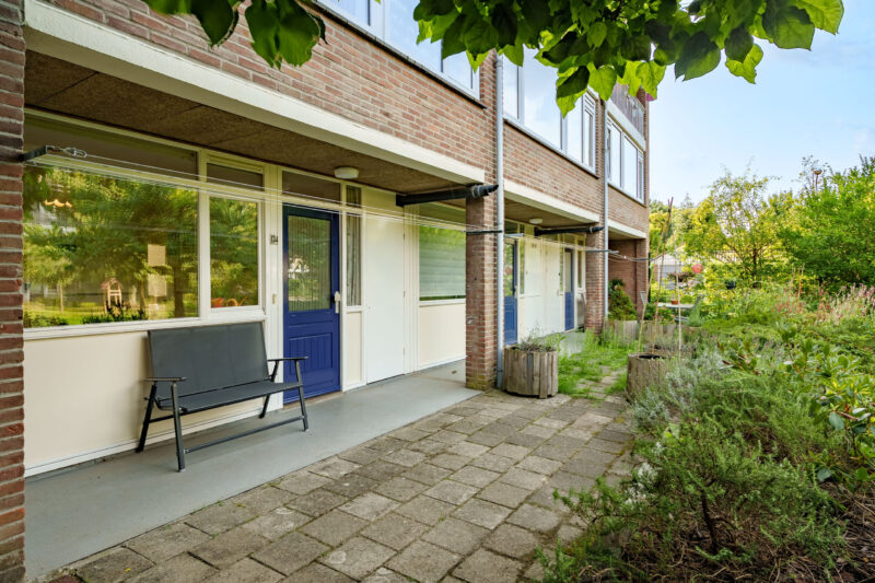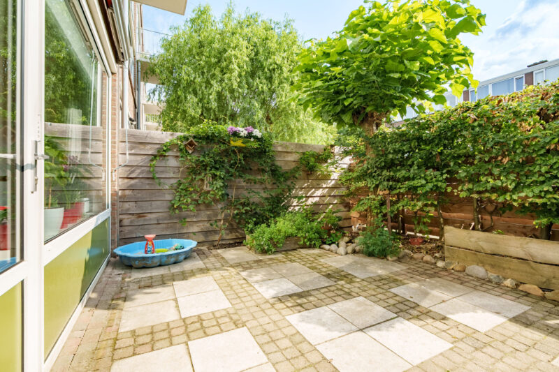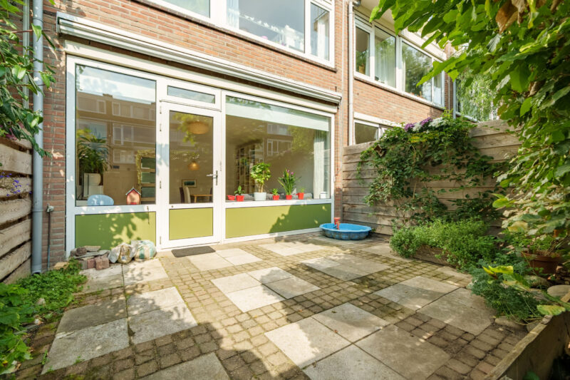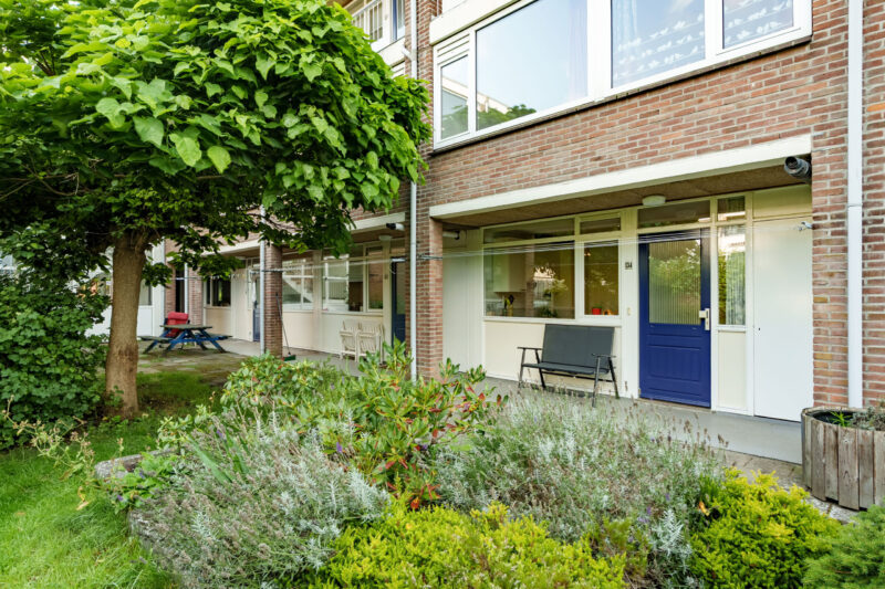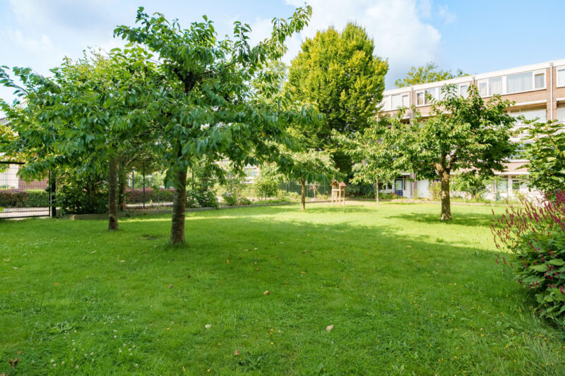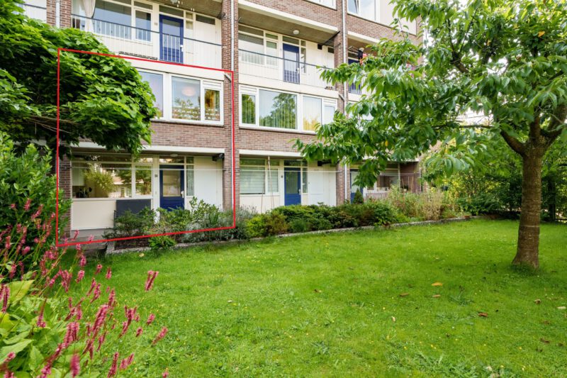 Vanuit de keuken is er tevens toegang tot een bergkast met aansluiting voor wasapparatuur. Ruime woonkamer gesitueerd aan de achterzijde van het appartement met grote raampartijen waardoor er veel lichtinval aanwezig is. De woonkamer biedt toegang tot de eigen tuin van ca. 16m². Bovendien is er een grote, gezamenlijke tuin waar je vanuit de keuken op uitkijkt en die direct toegankelijk is via de voordeur.