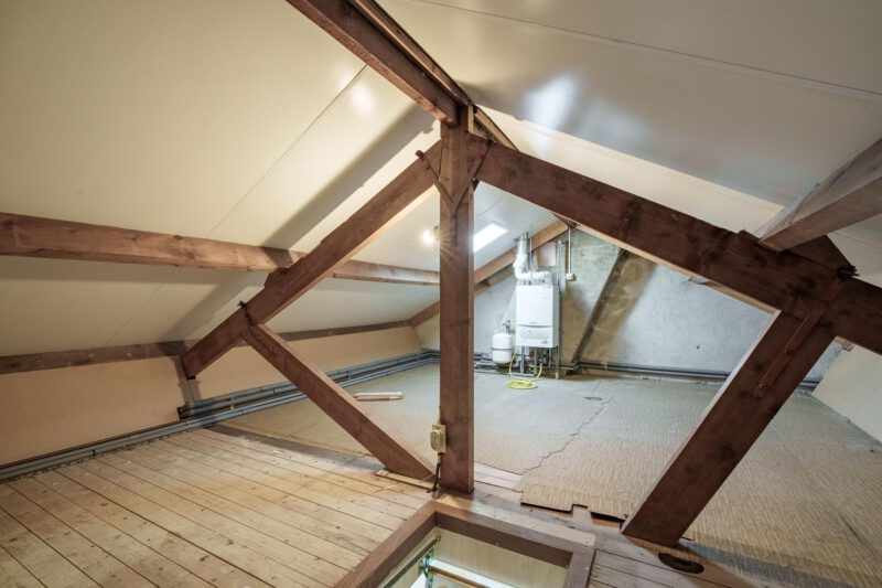 Vliering: (ca 12 m² op stahoogte) middels vlizotrap te bereiken bergzolder met een klein dakraam en opstelling CV-combiketel.