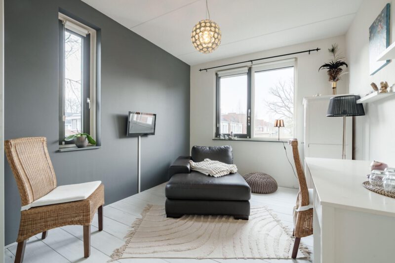 – Royale woonkamer met dubbele openslaande tuindeuren naar de achtertuin;