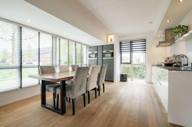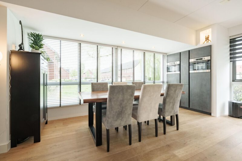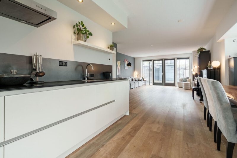 – Uitgebouwde woonkamer en uitgebouwde eetkeuken;