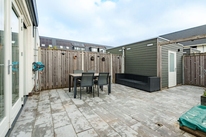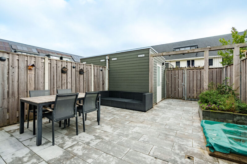 De woning beschikt over een ruime en onderhoudsvriendelijke achtertuin. Achterin de tuin staat een houten berging die praktische opbergruimte biedt, bijvoorbeeld voor fietsen of tuingereedschap. Daarnaast heeft de tuin een achterom.