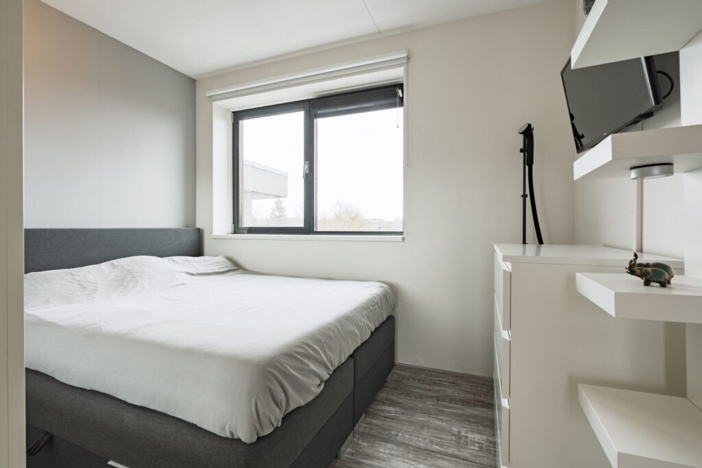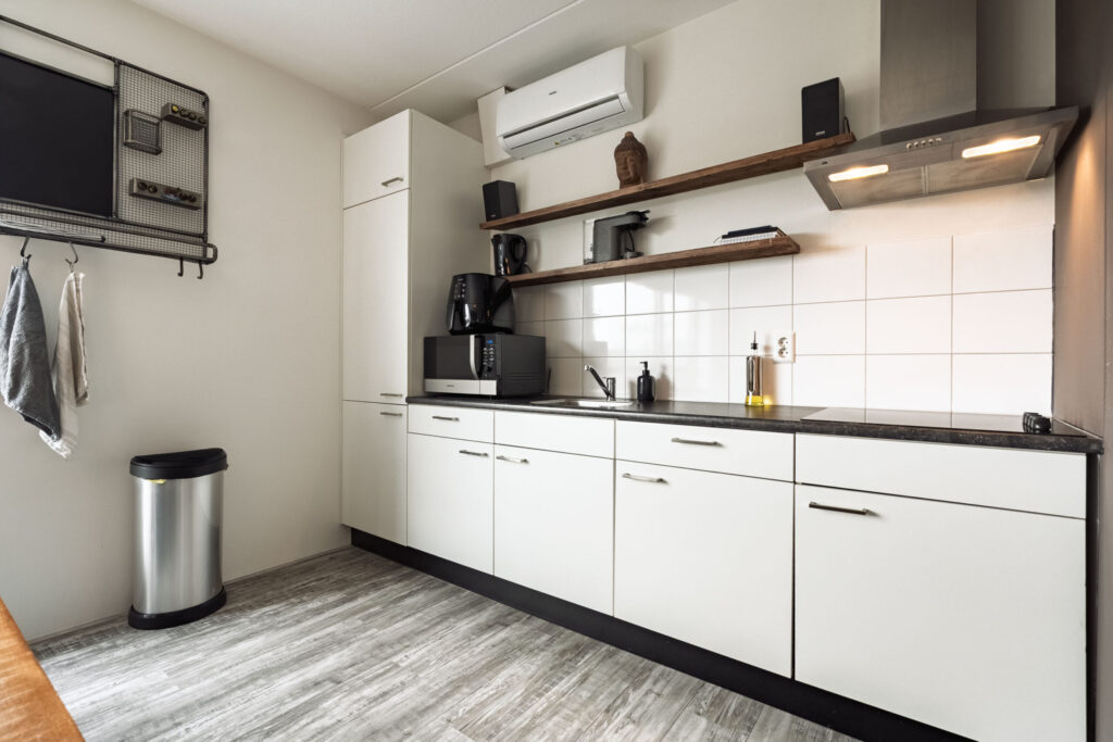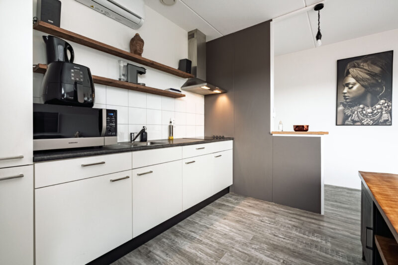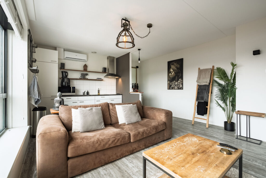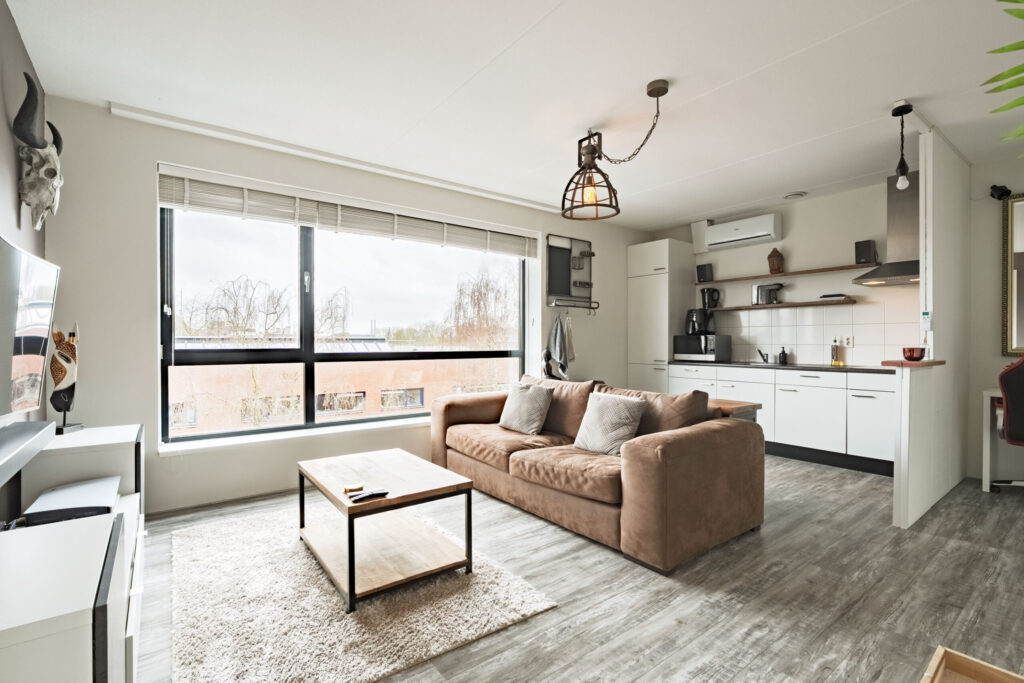 De open keuken sluit hier naadloos op aan en is praktisch ingericht. Daarnaast is er een tweepersoonsslaapkamer en een keurige badkamer in neutrale kleuren aanwezig. Dankzij de goede staat van onderhoud kun je hier snel en zonder zorgen intrekken.