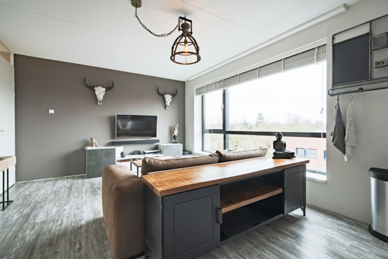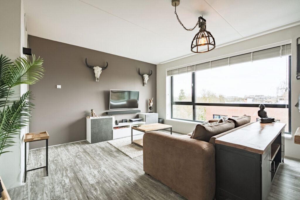 Bij binnenkomst valt direct de ruime en lichte woonkamer op, die dankzij de grote raampartijen een prettige, open sfeer heeft.