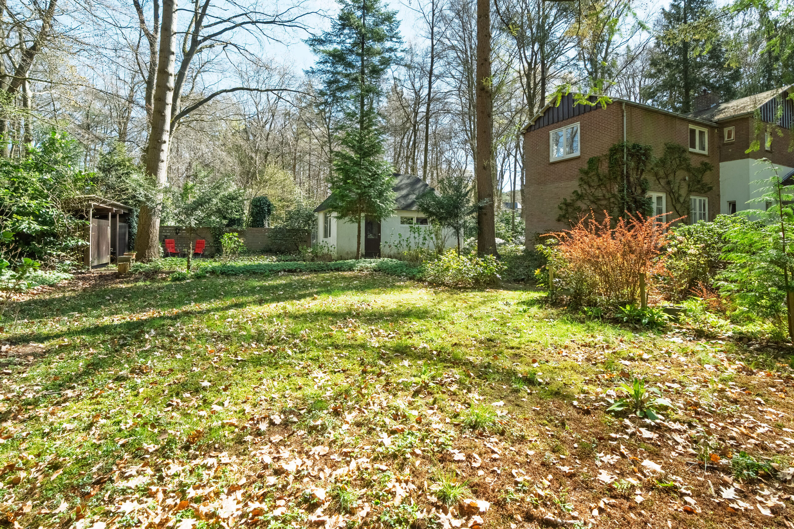 Een uniek perceel van maar liefst 3.155 m². De grootte van het perceel biedt deze woning een zeldzame combinatie van rust, ruimte en natuurbeleving. Zodra u het perceel betreedt, wordt u omarmd door de serene sfeer van het omliggende bos. De geur van dennen en loofbomen hangt subtiel in de lucht, terwijl het gezang van vogels een rustgevend decor vormt voor elke dag.