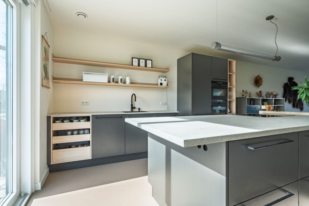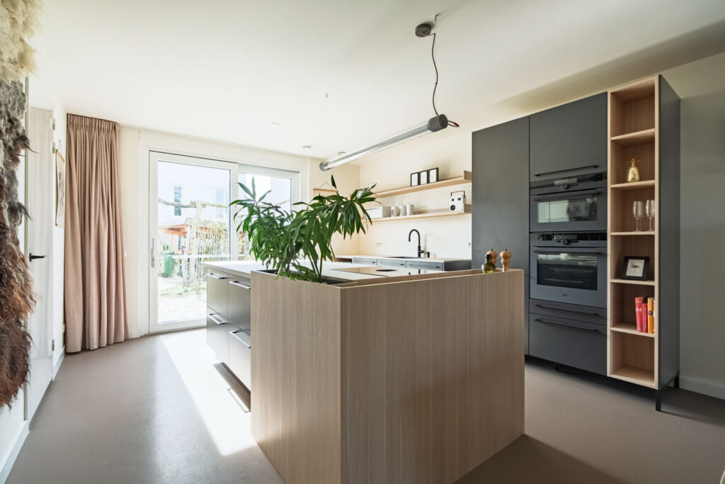 – Luxe hoog-segment design woonkeuken met kookeiland en hoogwaardige inbouwapparatuur;