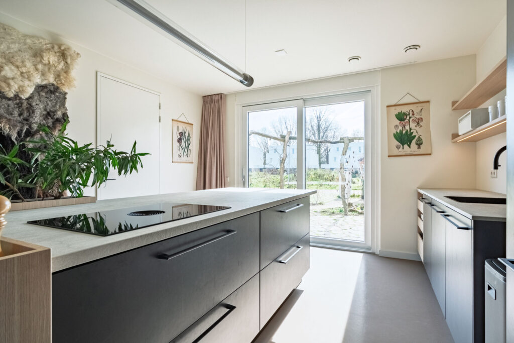 Bijzonder is dat deze gasloze woning wordt verwarmd via een bodemwarmtepomp en volledig is voorzien van vloerverwarming. Fijn dat je in de kamers geen radiatoren hebt die stiekem toch een hoop ruimte innemen.