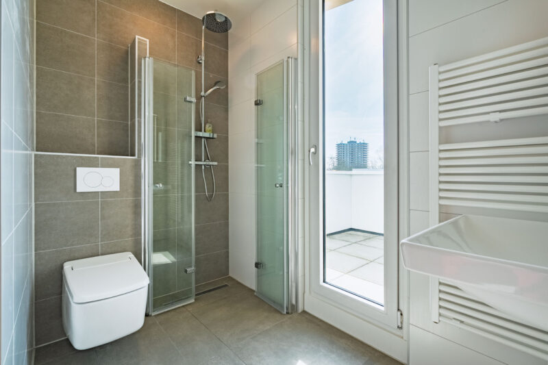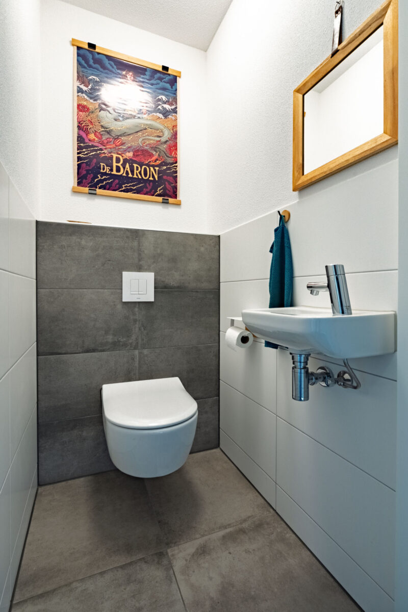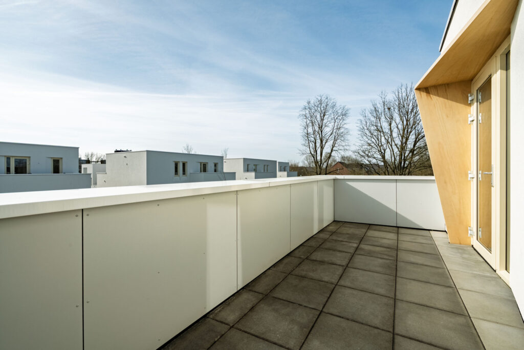 De tweede badkamer op deze verdieping is voorzien van een inloopdouche, een zwevend Japans toilet en een wastafel. Zowel één van de slaapkamers als de badkamer biedt toegang tot een fijn ruim dakterras, waar je eenvoudig een comfortabele zitplek kunt creëren.