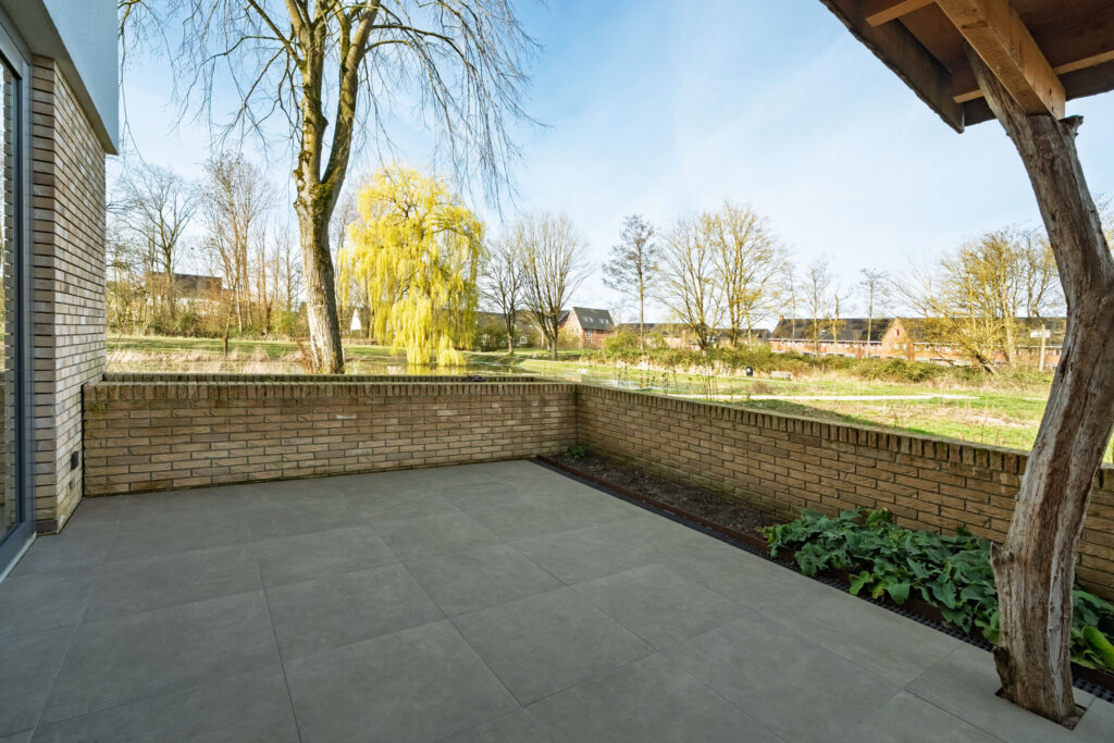 – De tuin aan de hofzijde en het terras aan de parkzijde zijn voorzien van een overkapping;