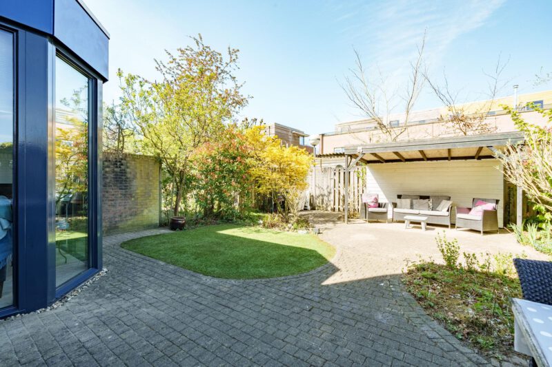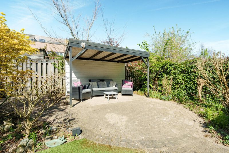 De woning beschikt over een zonnige tuin met houten veranda op het noordwesten en biedt veel privacy. Een plek waar u heerlijk kunt zitten met vrienden of familie. Aan de voorzijde bevindt zich een aangebouwde stenen garage.