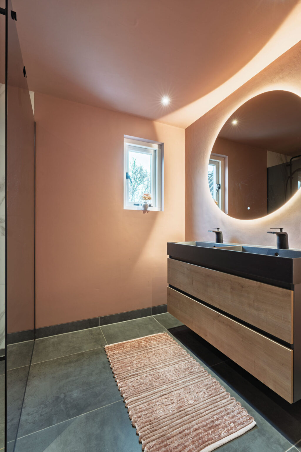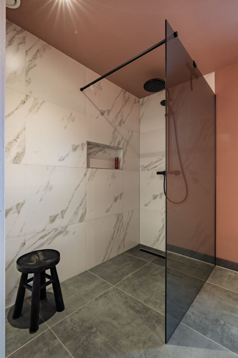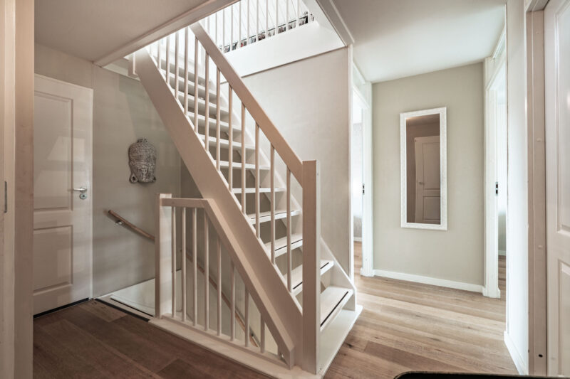 Eerste verdieping: Overloop met toegang tot alle vertrekken en vaste trap naar de tweede verdieping. De badkamer is voorzien van een dubbele wastafel en inloopdouche met hardglazen scherm. Daarnaast is er een separate toiletruimte met fonteintje.