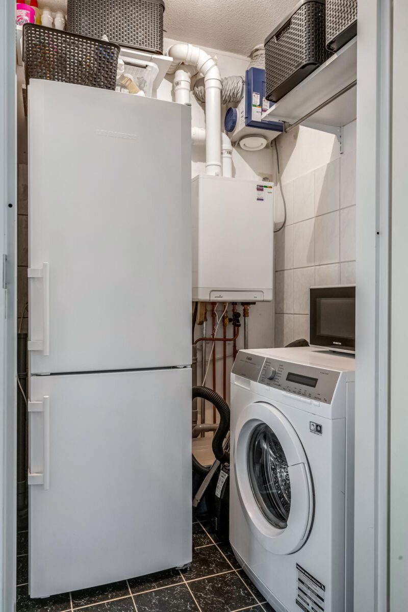 Ruime entree/hal met meterkast, toiletruimte met staand closet en fonteintje. Berging met C.V.-opstelling, aansluiting wasapparatuur en mechanische ventilatiebox. Via de hal zijn alle ruimtes van het appartement bereikbaar.