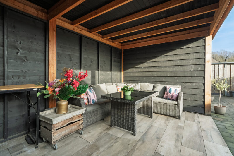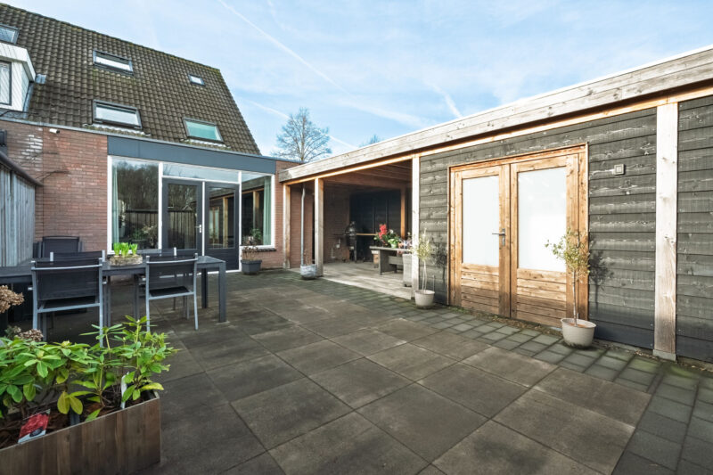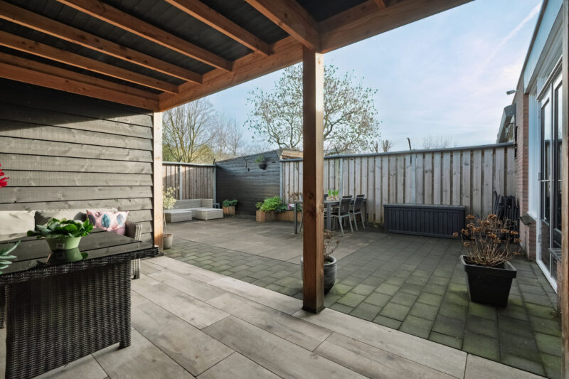 – Onderhoudsvriendelijke tuin met veranda en berging (2021);