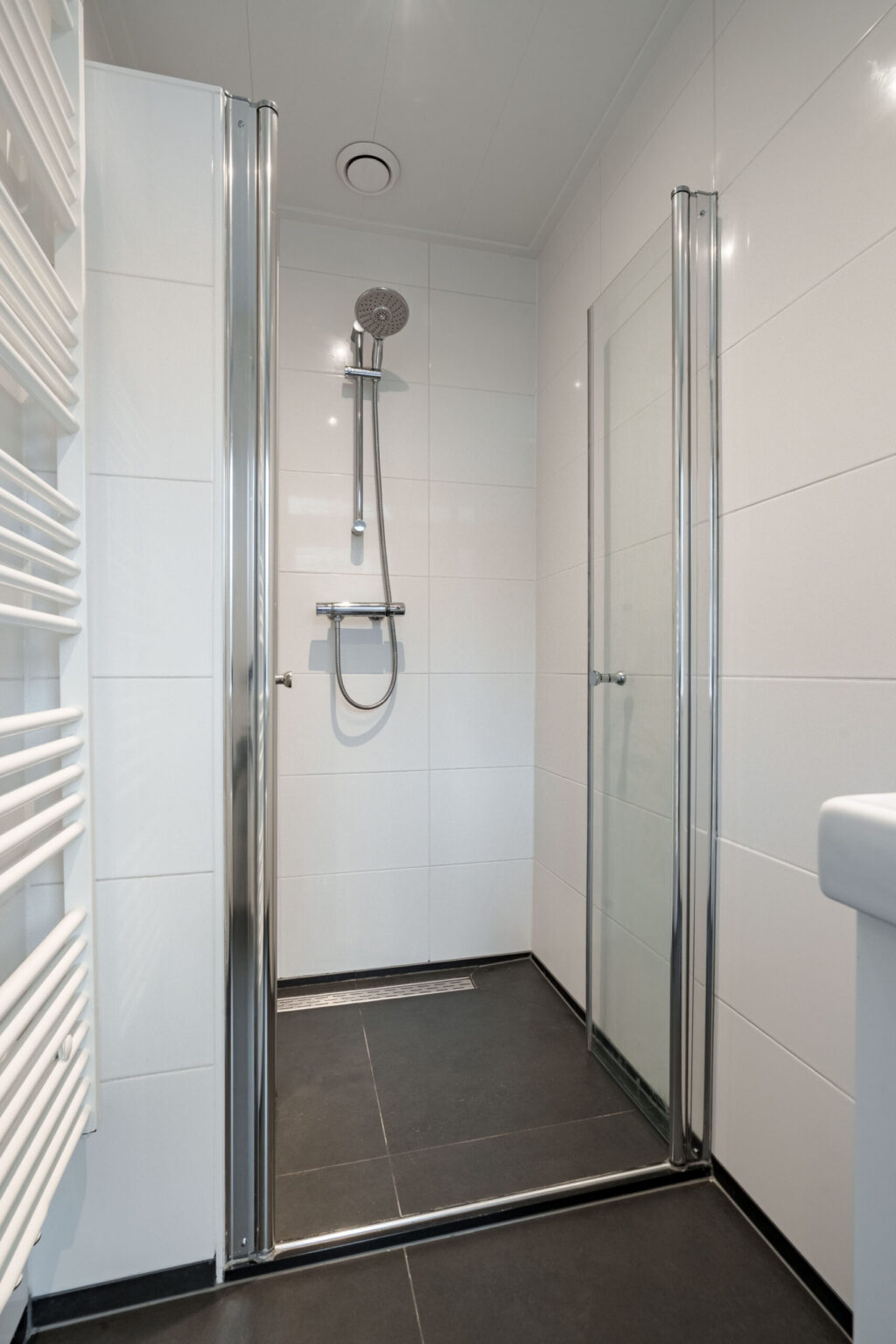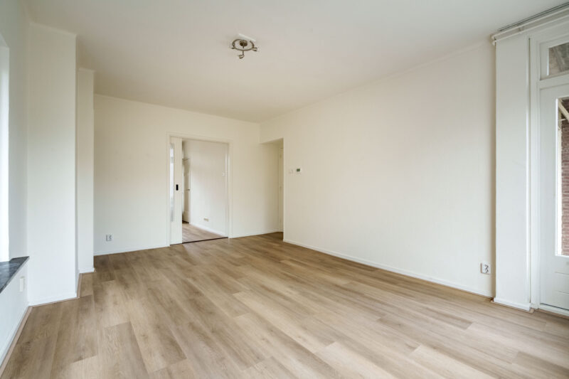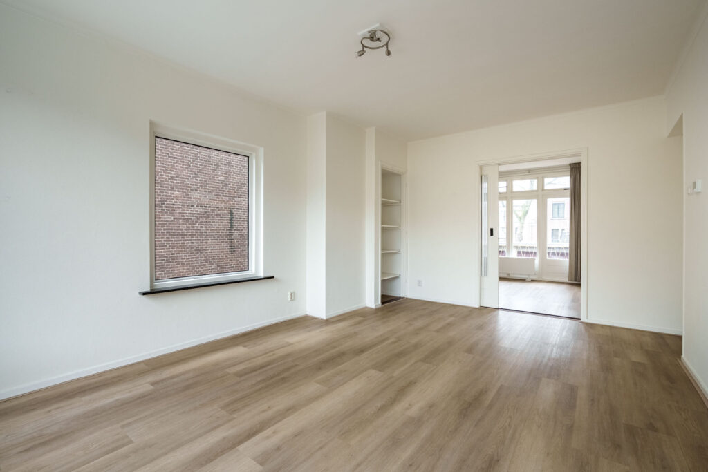 Entree, ruime hal met meterkast, toilet met fonteintje, sfeervolle woonkamer met toegang tot het balkon. Aansluitend de slaapkamer die afgesloten kan worden middels schuifdeur.