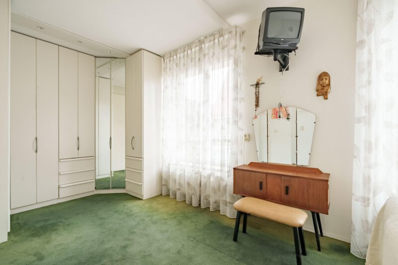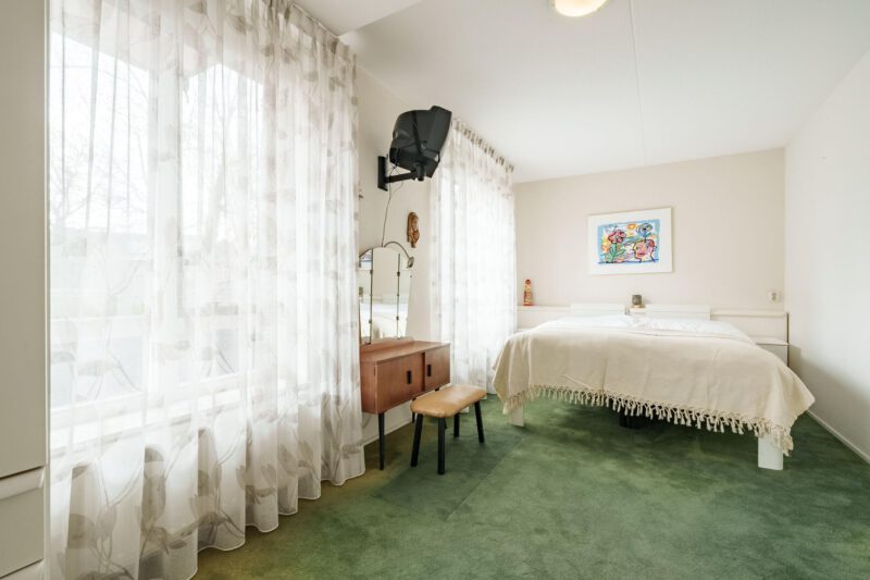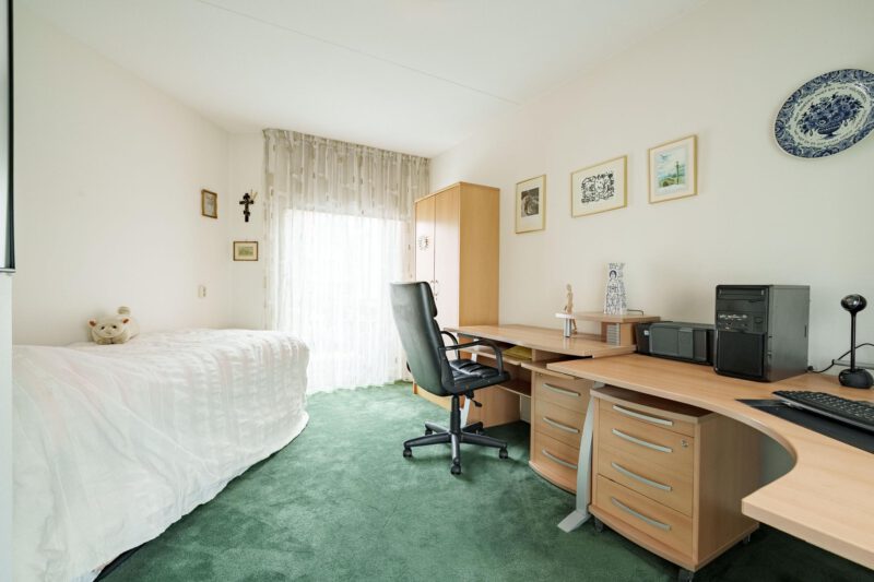 Het appartement beschikt over twee comfortabele slaapkamers. De eerste slaapkamer bevindt zich aan de achterzijde en beschikt over veel privacy. De tweede slaapkamer grenst aan de zijkant van het appartement en heeft een speelse indeling en grote ramen die zorgen voor een prettige lichtinval.