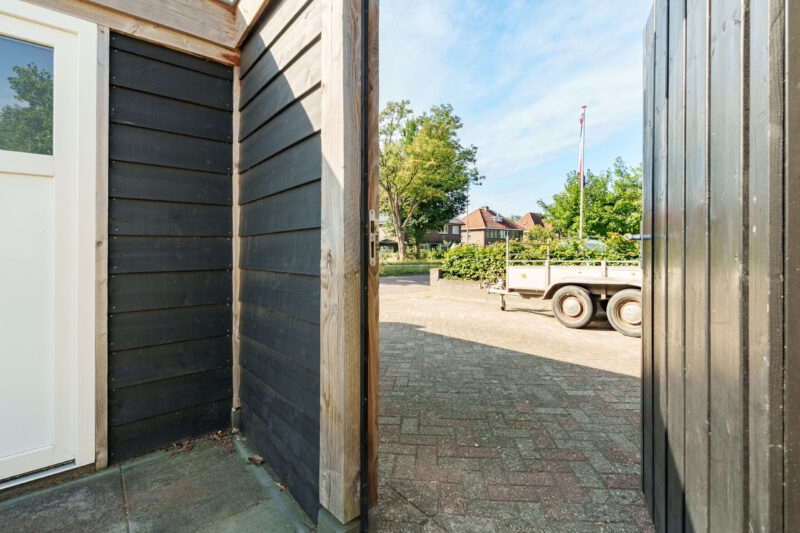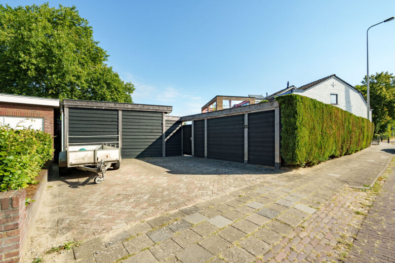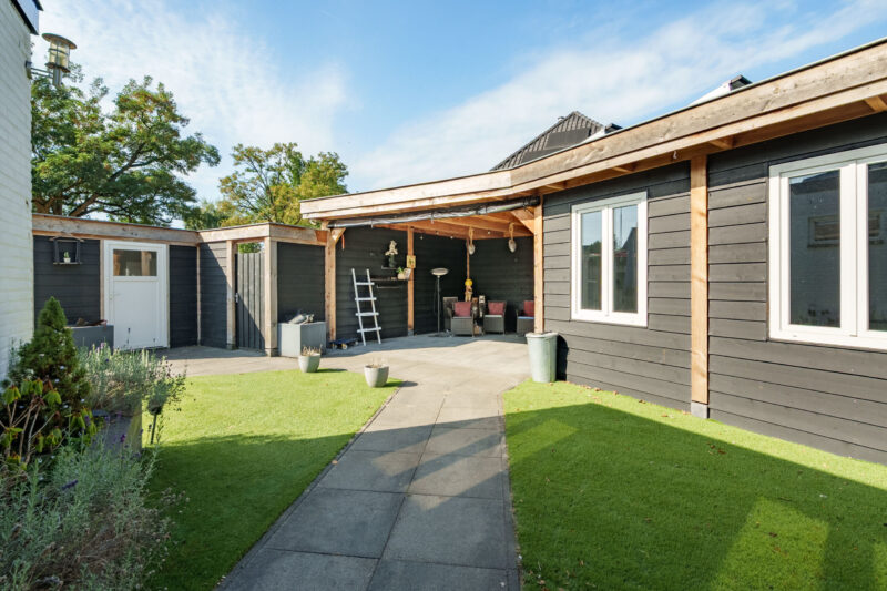 De zonnig gelegen achtertuin is voorzien van een houten overkapping met tuinhuis én een extra separate houten berging. Parkeerplaats aanwezig op eigen terrein.