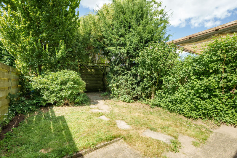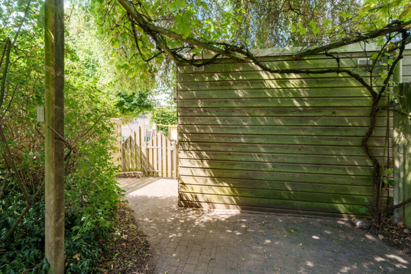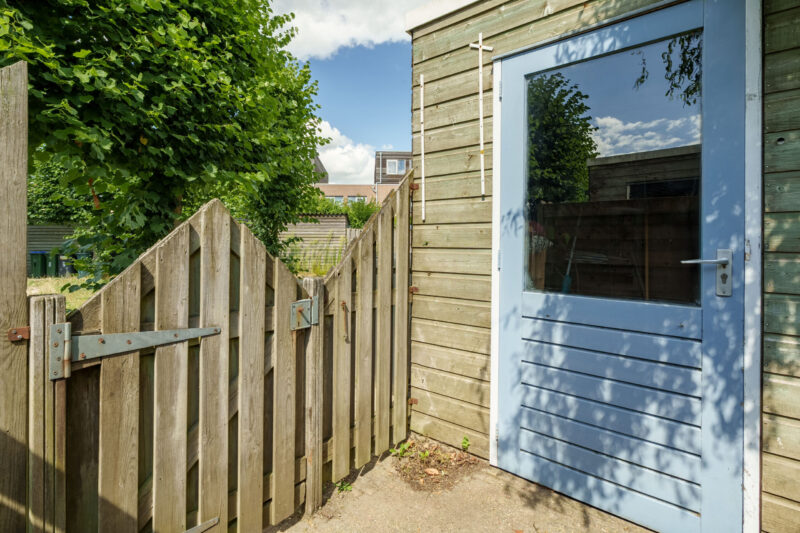 De tweede verdieping geeft via een vlizotrap toegang tot een praktische opbergzolder, ideaal voor het bewaren van seizoensgebonden spullen of andere zaken die u niet dagelijks nodig heeft. Daarnaast beschikt de woning over een houten berging in de achtertuin, perfect voor het stallen van fietsen en het opbergen van tuingereedschap. Dankzij de praktische achterom zijn de fietsen eenvoudig binnen te zetten in de houten berging.