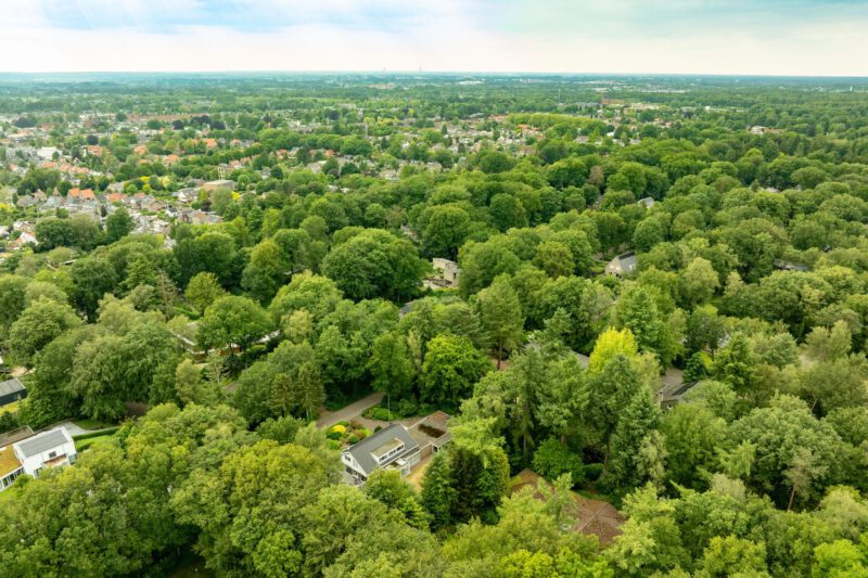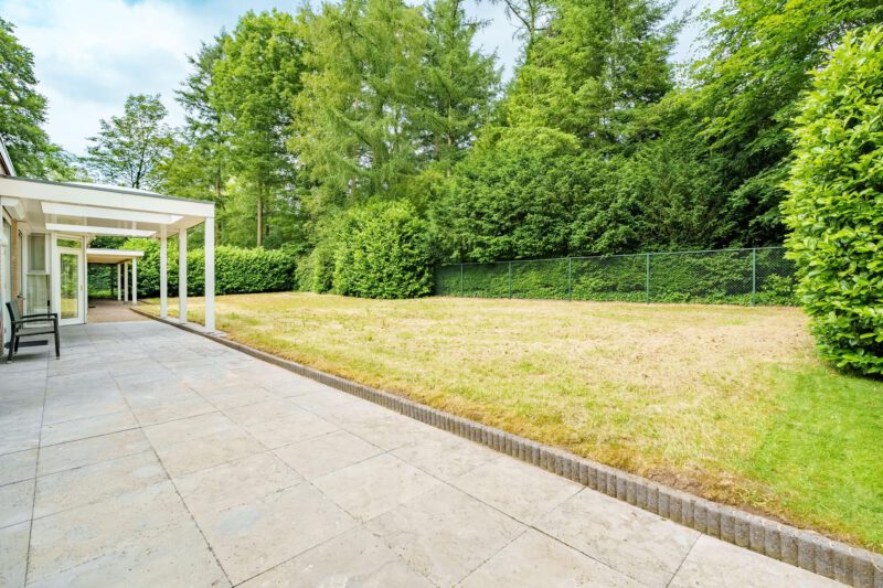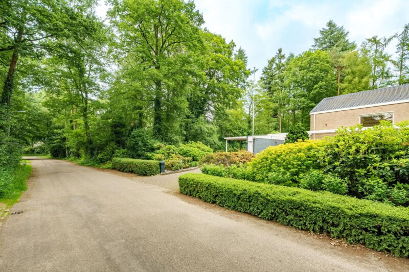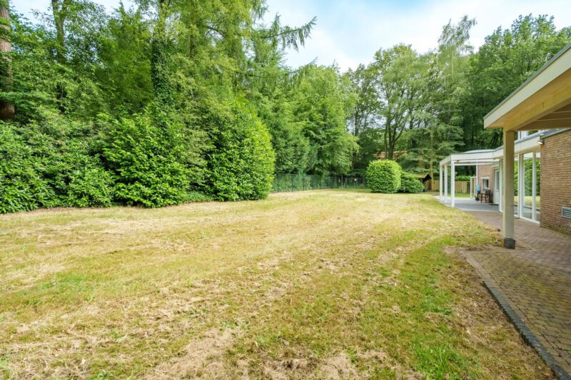 Er zijn meerdere terrassen al dan niet overdekt met zon -en schaduwplekjes waar je in deze villawijk heerlijk kunt genieten van de rust, het buitenleven en de bosrijke omgeving met uitsluitend bestemmingsverkeer. Door de verhoogde ligging van de woning ten opzichte van de Prins Willem Alexanderlaan is optimale privacy aanwezig.