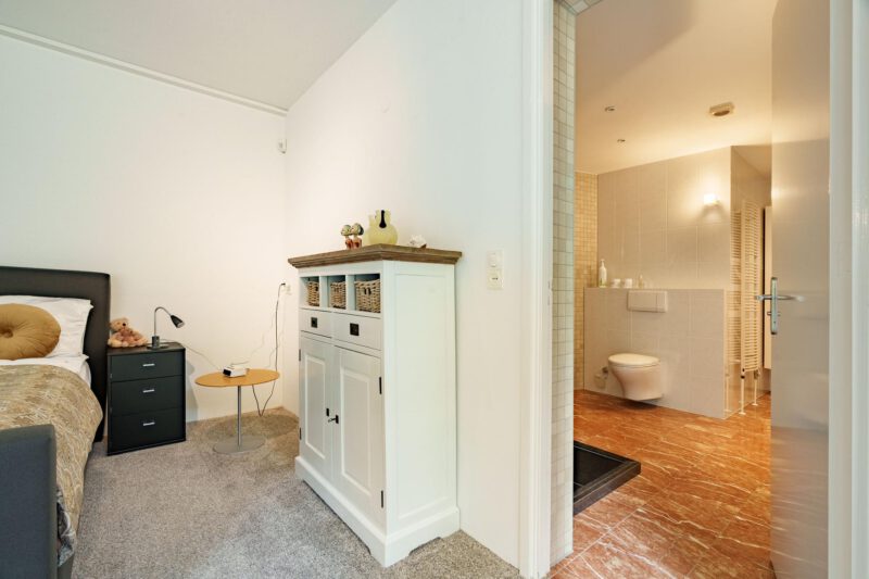 – Grote slaapkamer met een complete badkamer op de begane grond;