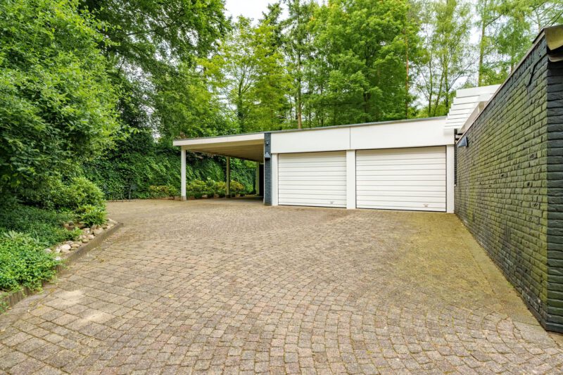 – Dubbele ruime garage voor meerdere auto’s en degelijk uitgevoerde carport voor één auto.