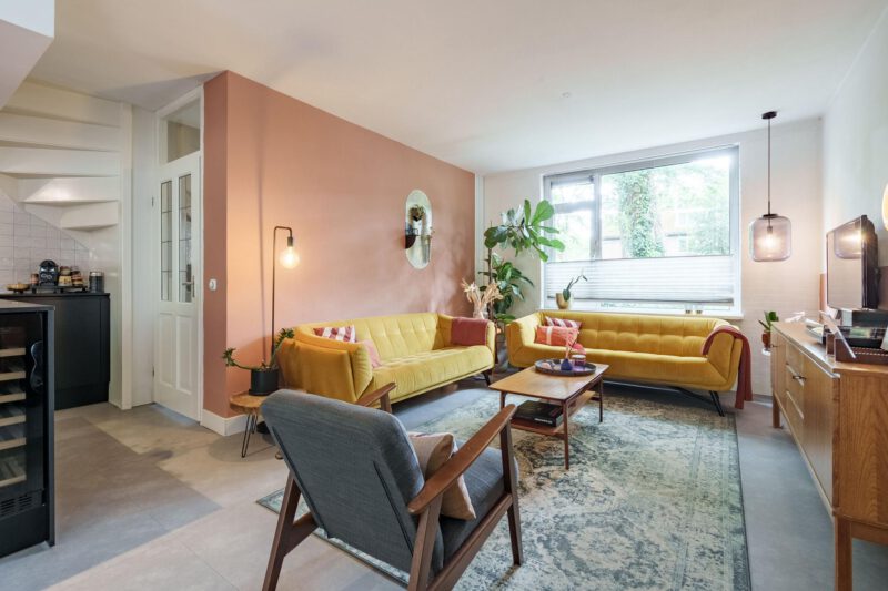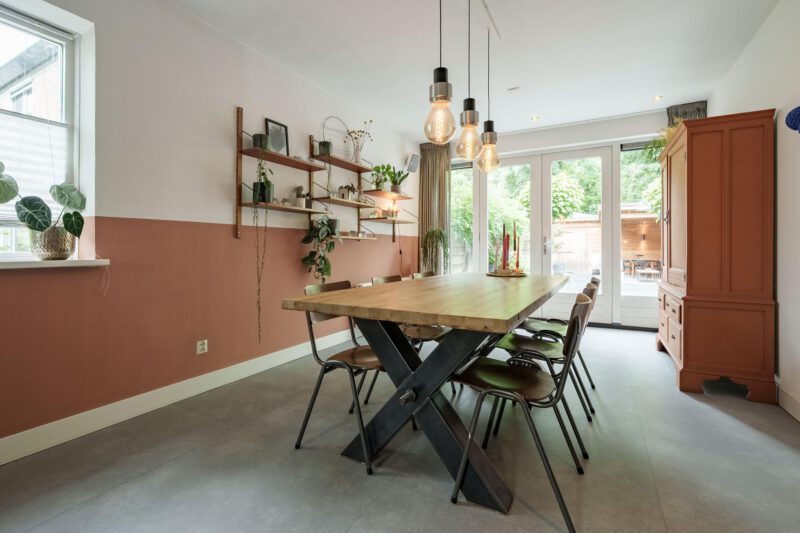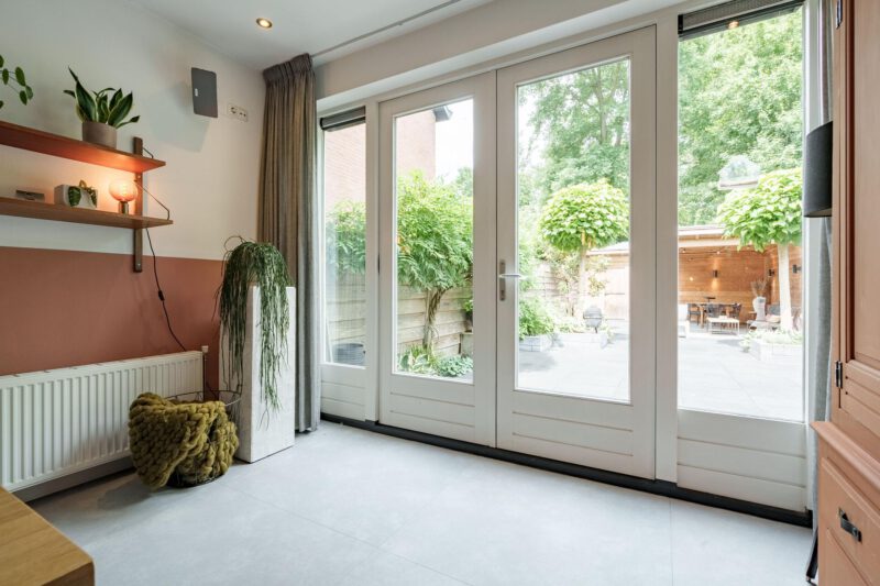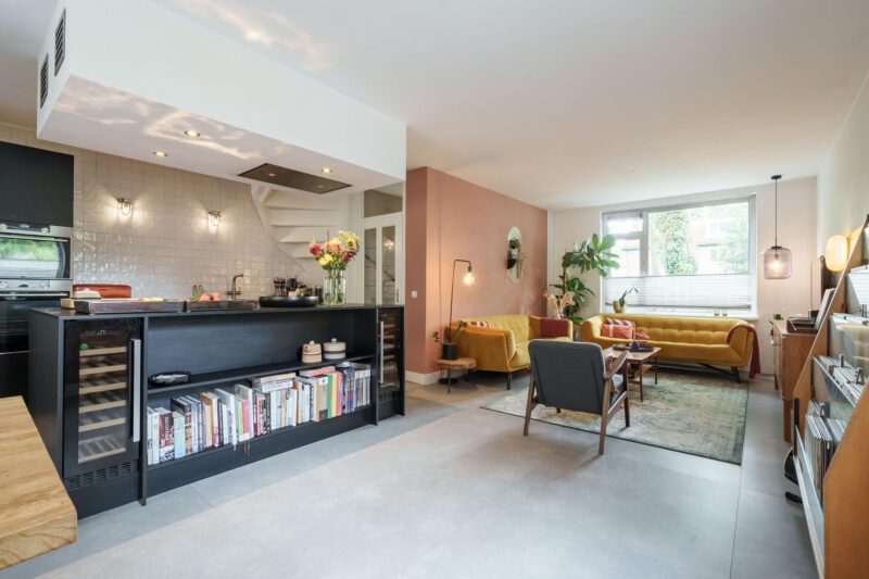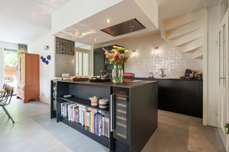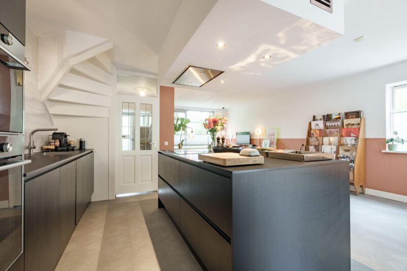 Via de verzorgde voortuin bereikt u de entree van de woning. In de hal bevinden zich een modern toilet met fonteintje en de toegang tot de lichte, ruime woonkamer. De sfeervolle woonkeuken is centraal in de woning gesitueerd en vormt het hart van het huis. De keuken is voorzien van een inductiekookplaat, afzuigkap, combi-oven/combimagnetron, koel-vriescombinatie, vaatwasser, wijnklimaatkasten en Quoocker. Deze open ruimte verbindt de woonkamer met de eetkamer en is bij uitstek een plek waar gezelligheid en samenzijn samenkomen. De praktische, inpandige berging is voorzien van vaste kasten en biedt volop opbergruimte. Aan de achterzijde zorgen openslaande deuren voor een naadloze overgang naar de tuin en versterken het binnen-buiten gevoel.
