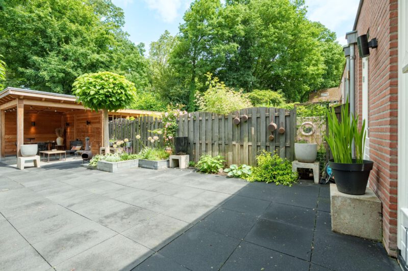 De woning is voorzien van een onderhoudsarme tuin. Achterin de tuin bevindt zich een sfeervolle veranda voor de gezellige zomeravonden.