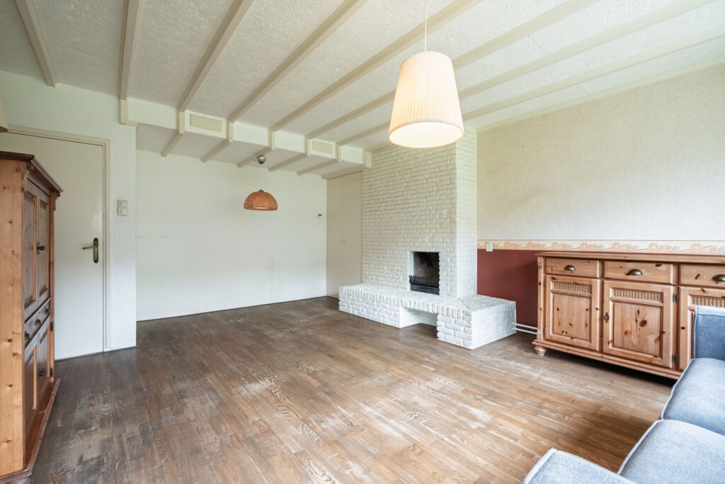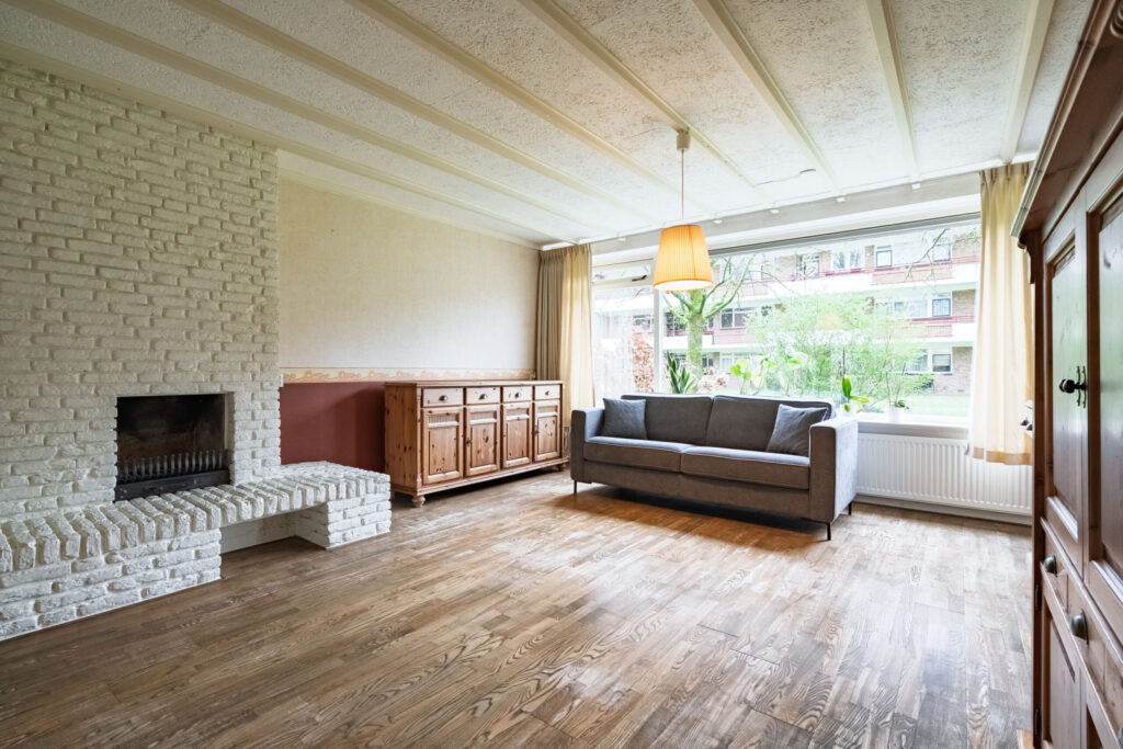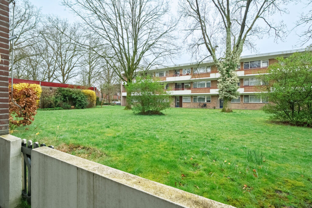 Wanneer u het appartement betreedt, komt u in de hal die toegang biedt tot de verschillende vertrekken. De woonkamer is ruim en beschikt over grote raampartijen aan de achterzijde, wat zorgt voor een prettige lichtinval en een vrij uitzicht op de groenstrook. De haard draagt bij aan extra sfeer en comfort. Vanuit de woonkamer is er toegang tot het balkon/terras.