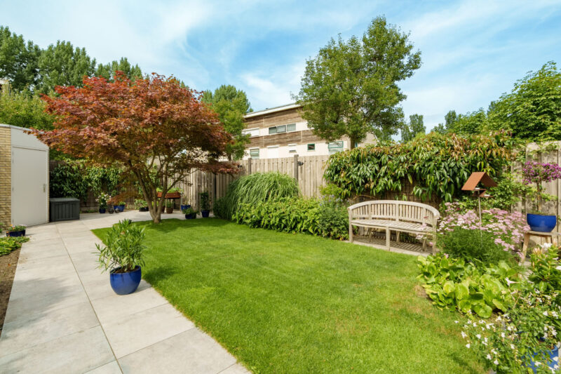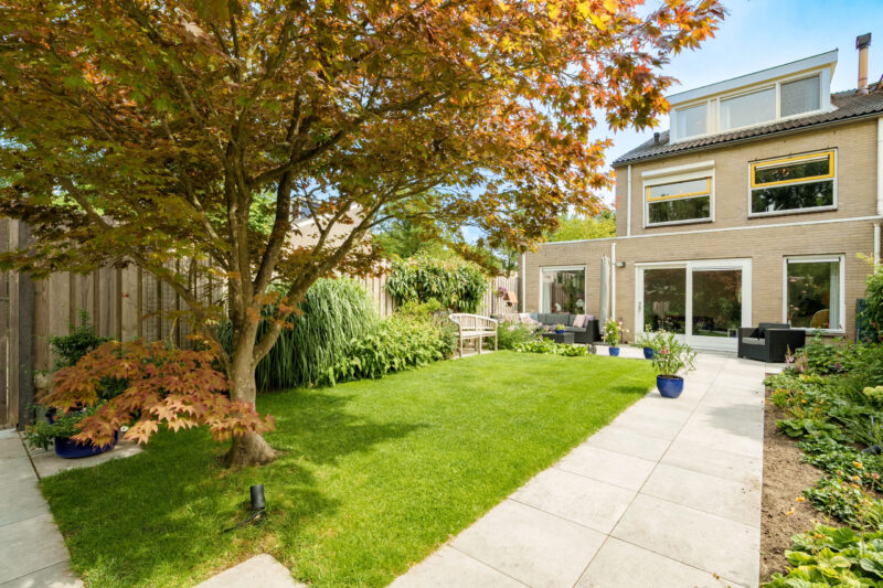De woning beschikt over een royale achtertuin die is gelegen op het noorden. Dankzij de diepte van de tuin van zo’n 15,6 meter is er de hele dag door een fijne afwisseling van zon en schaduw, waardoor u op elk moment van de dag een prettig plekje kunt vinden. De praktische, ruime berging biedt ruimte voor het stallen van fietsen en het opbergen van tuingereedschap of andere spullen. De tuin is bovendien voorzien van een achterom.