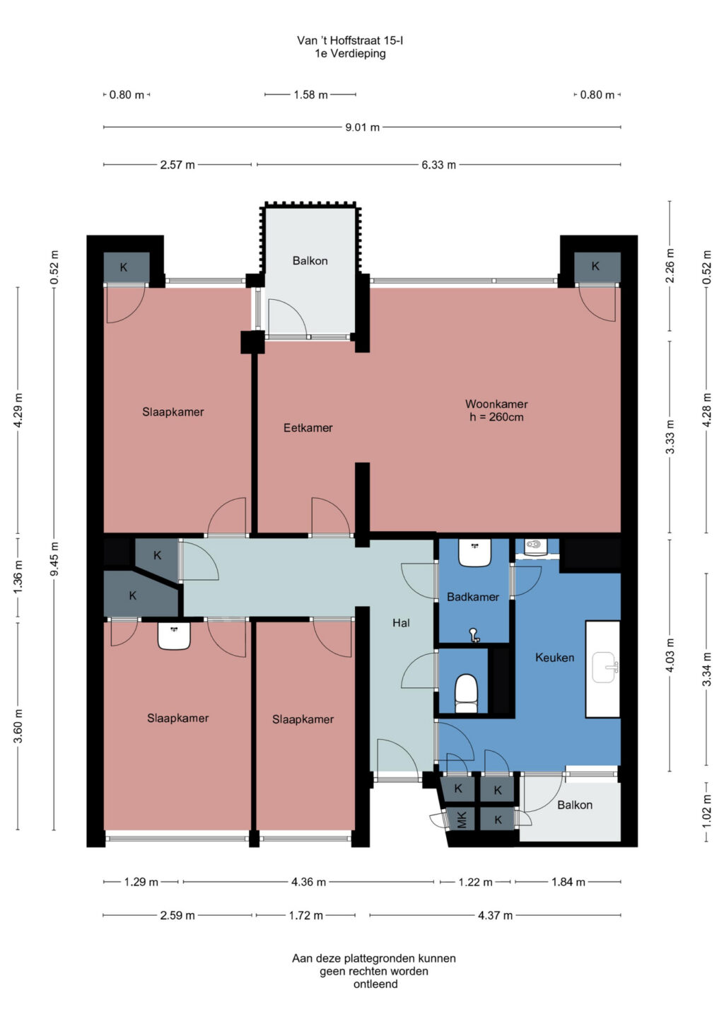 – Balkon aanwezig aan de voor- en achterzijde van het appartement;