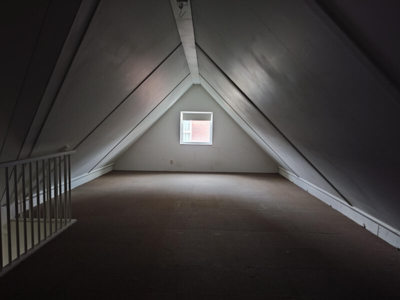 Zolder: via een vaste trap, open zolderruimte met aansluiting voor wasmachine/droger.