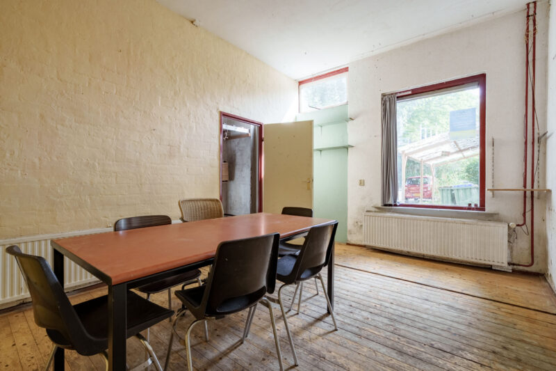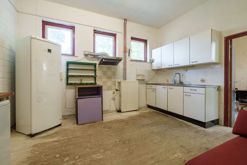 De keuken is voorzien van een keukenblok met kraan. Aansluitend bevindt zich de ruime eetkamer.