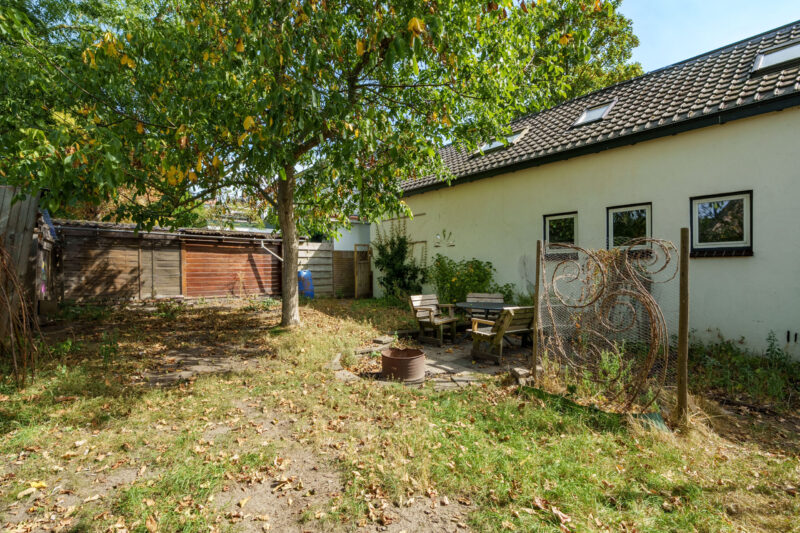 De ruime, groene tuin is ideaal voor liefhebbers van tuinieren. Met een diepte van circa 10 meter en een breedte van meer dan 16 meter is er volop ruimte om de tuin geheel naar eigen smaak en wensen in te richten. Dankzij de ligging op het zuidwesten geniet u hier in de middag en avond van de zon of u nu droomt van een kleurrijke bloementuin, een moestuin of een groot terras met meerdere zitplekken, de mogelijkheden zijn eindeloos.