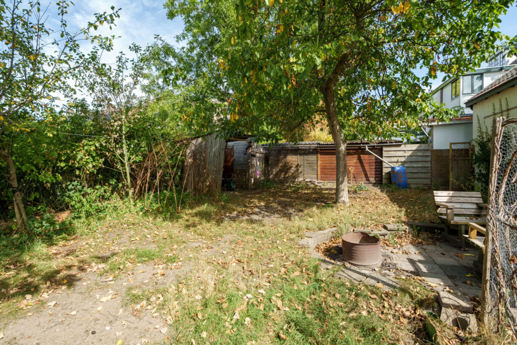De ruime, groene tuin is ideaal voor liefhebbers van tuinieren. Met een diepte van circa 10 meter en een breedte van meer dan 16 meter is er volop ruimte om de tuin geheel naar eigen smaak en wensen in te richten. Dankzij de ligging op het zuidwesten geniet u hier in de middag en avond van de zon of u nu droomt van een kleurrijke bloementuin, een moestuin of een groot terras met meerdere zitplekken, de mogelijkheden zijn eindeloos.