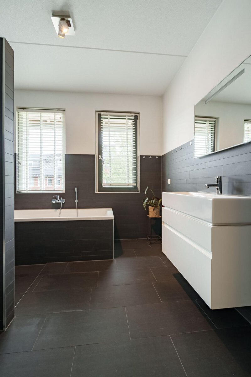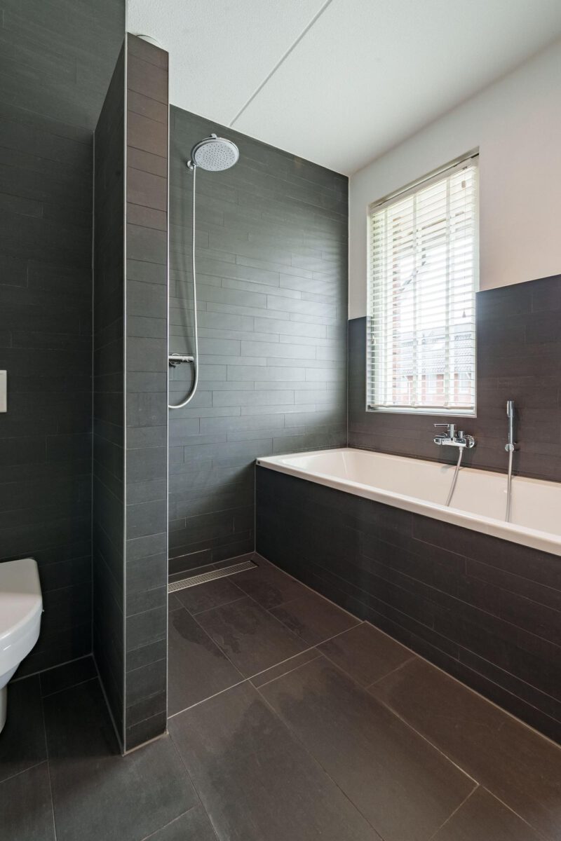 Op de eerste verdieping bevinden zich drie slaapkamers, waarvan de grootste heerlijk ruim is en voldoende plek biedt voor een groot bed en een kastenwand. De andere twee kamers zijn uitstekend geschikt als kinder- of werkkamer. De badkamer is modern afgewerkt en voorzien van een comfortabele inloopdouche, ligbad, tweede toilet en wastafelmeubel.