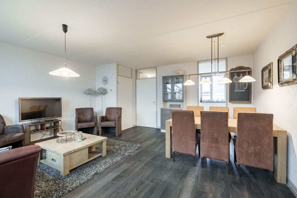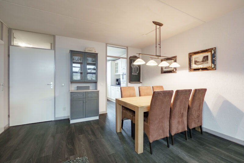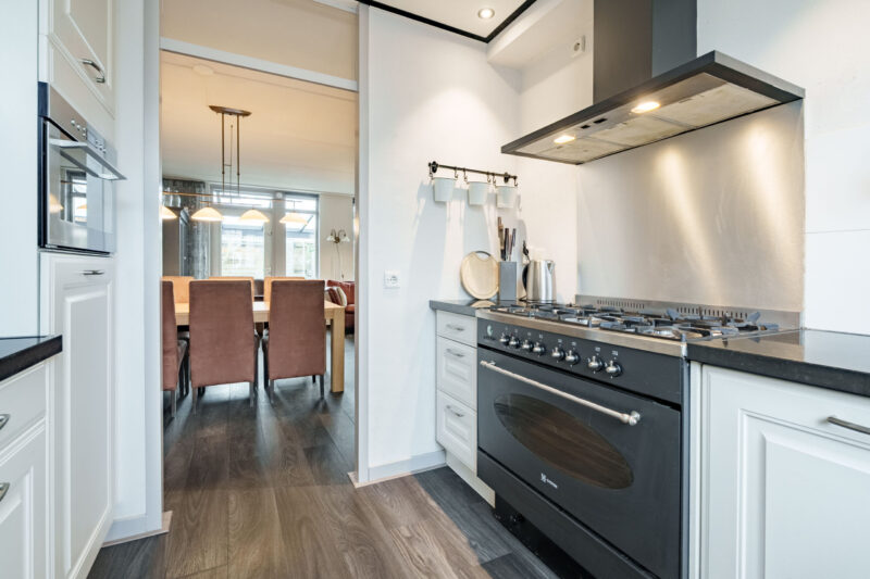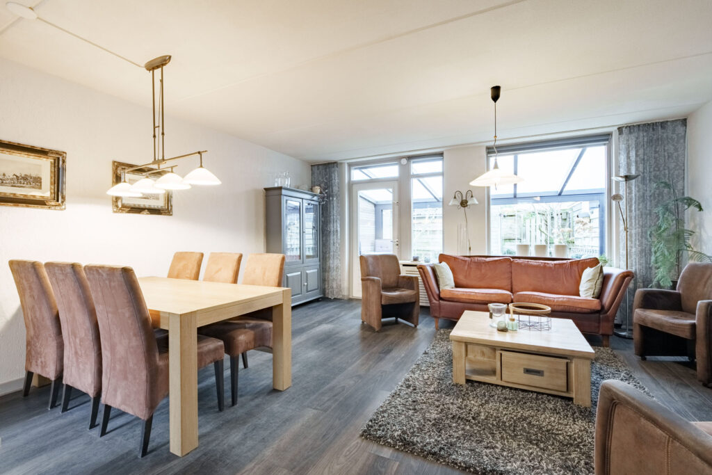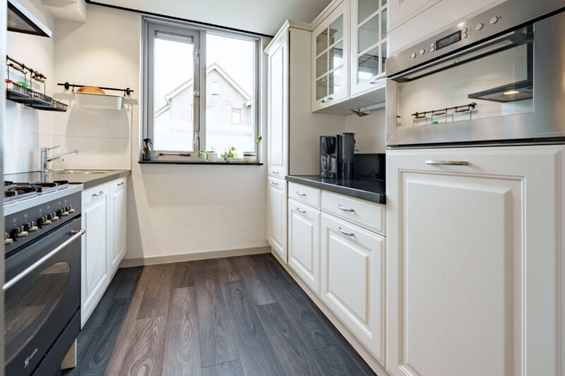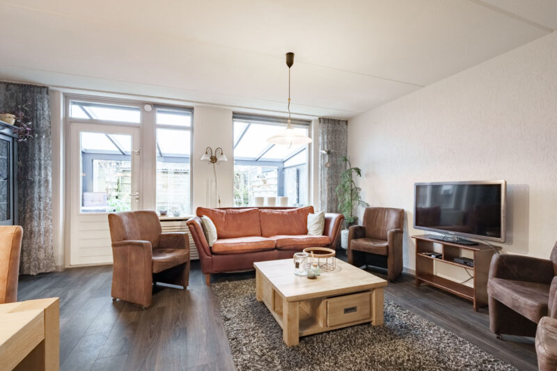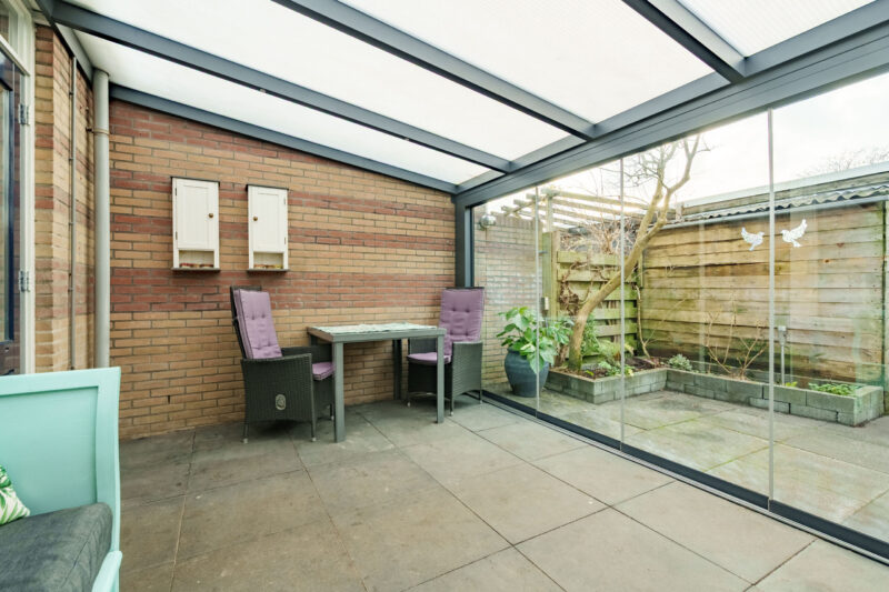 Wanneer u de woning binnenstapt, komt u in de entree/hal met het toilet voorzien van een fonteintje. Vanuit de hal bereikt u de tuingerichte woonkamer, welke is voorzien van een loopdeur naar de achtertuin. Aansluitend aan de woonkamer bevindt zich de glazen veranda, een prettige extra leefruimte met zicht op de tuin. De moderne halfopen keuken is eveneens vanuit de woonkamer bereikbaar en is voorzien van diverse inbouwapparatuur, te weten: een M-System 6-pits gasfornuis, afzuigkap, vaatwasser, koelkast, vriezer en een combi-oven.