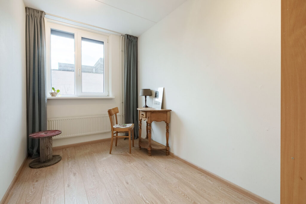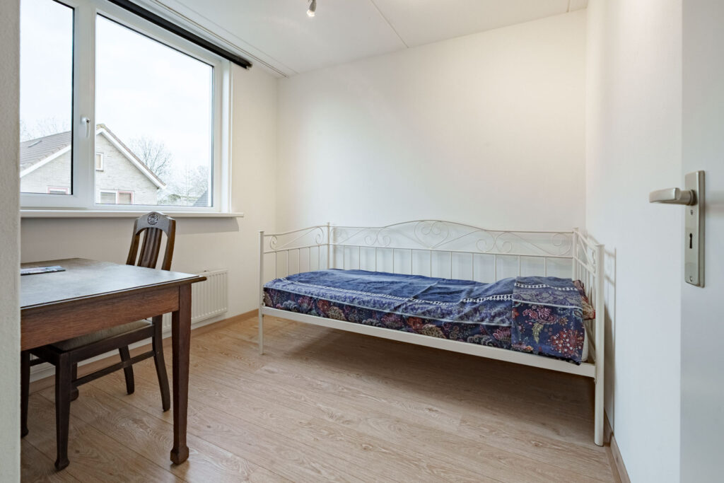 Via de trap bereikt u de eerste verdieping, waar u uitkomt op de overloop. De ouderslaapkamer is gesitueerd aan de voorzijde van de woning, evenals de tweede slaapkamer. De badkamer is ingericht met een douchehoek, vaste wastafel, handdoekenradiator en een tweede toilet (vrijhangend). De derde slaapkamer bevindt zich aan de achterzijde van de woning.